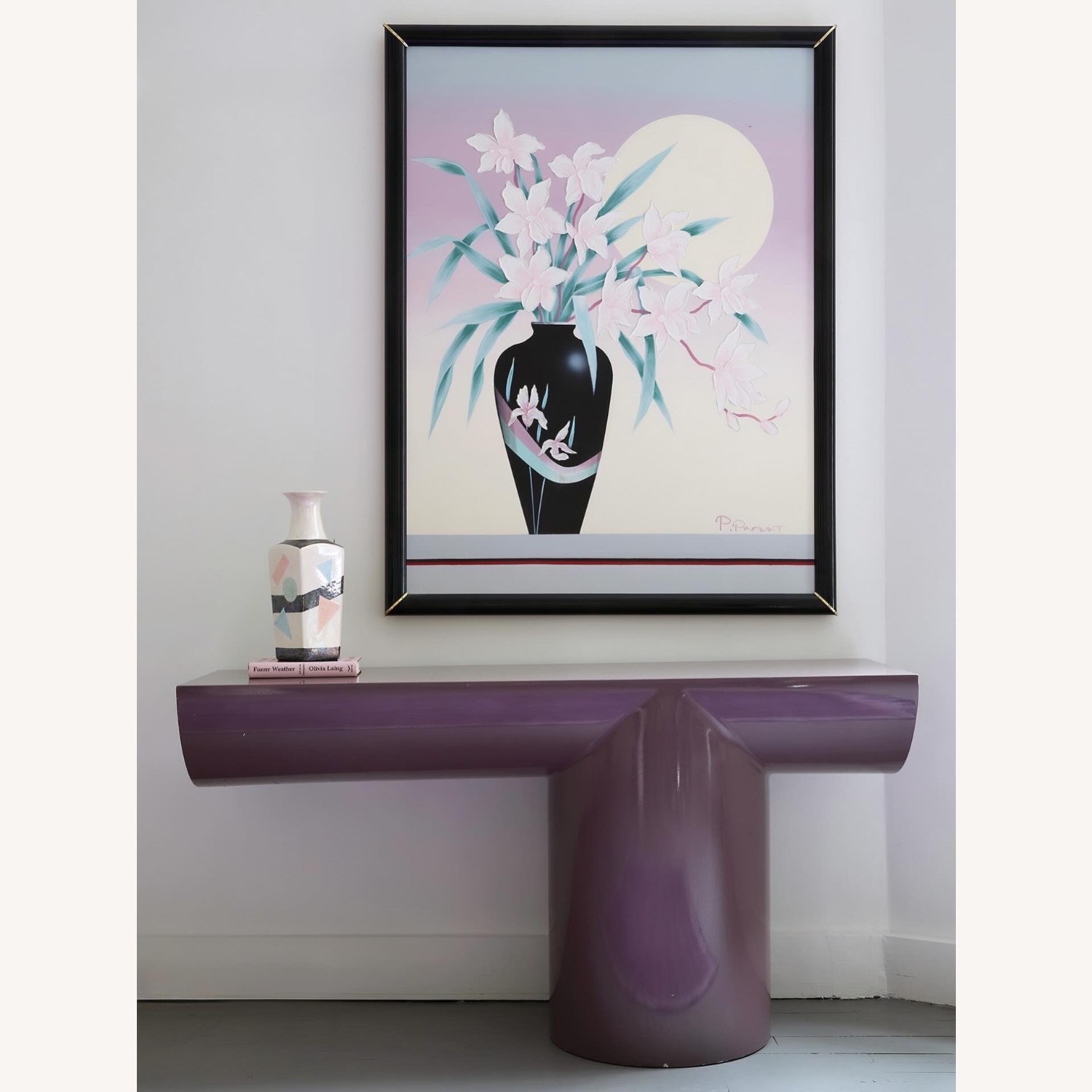 “Tee” Console table is dusty plum lacquer