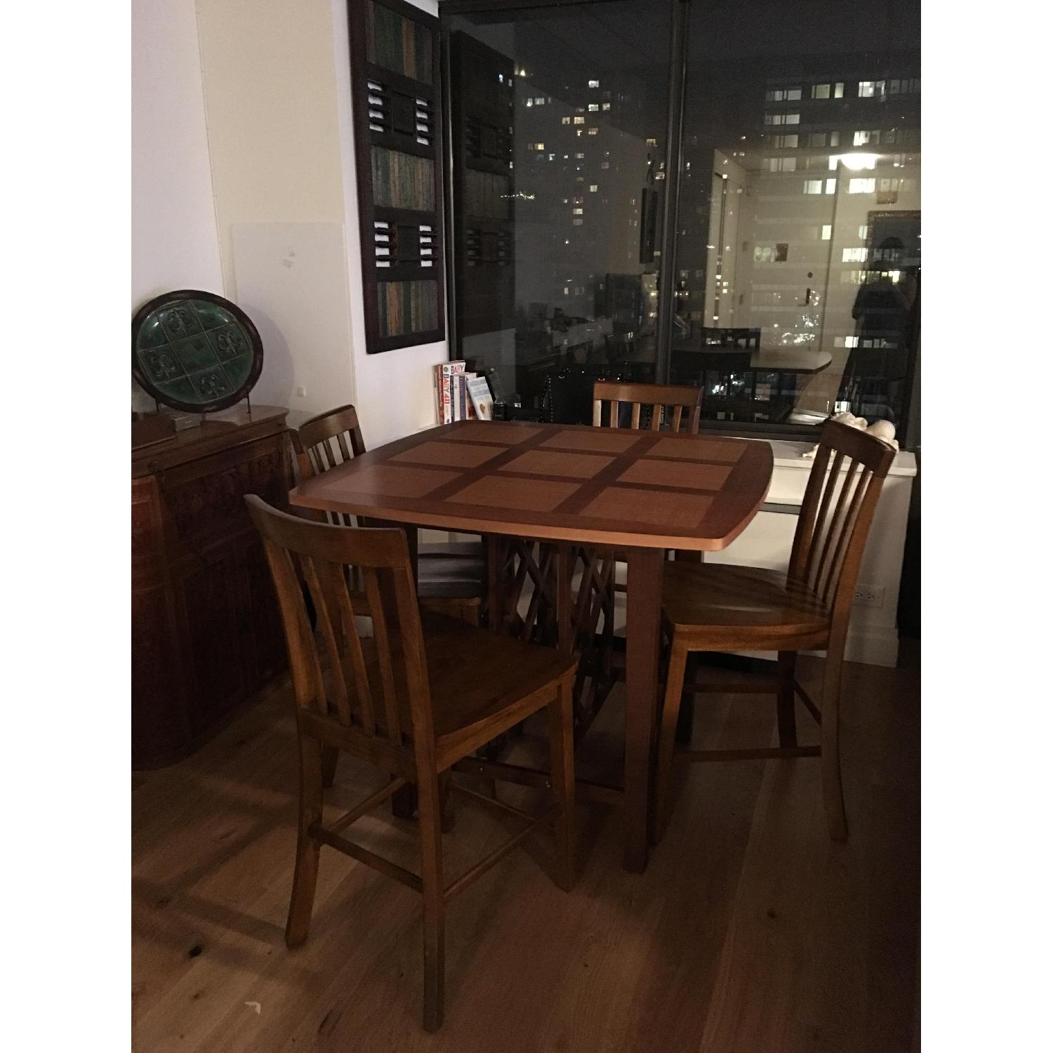 Seller's Notes:beautiful trendy dining bar table with wine rack extremely solid dining table and four chairs I purchased table and chairs separately but they Match perfectly. Like new