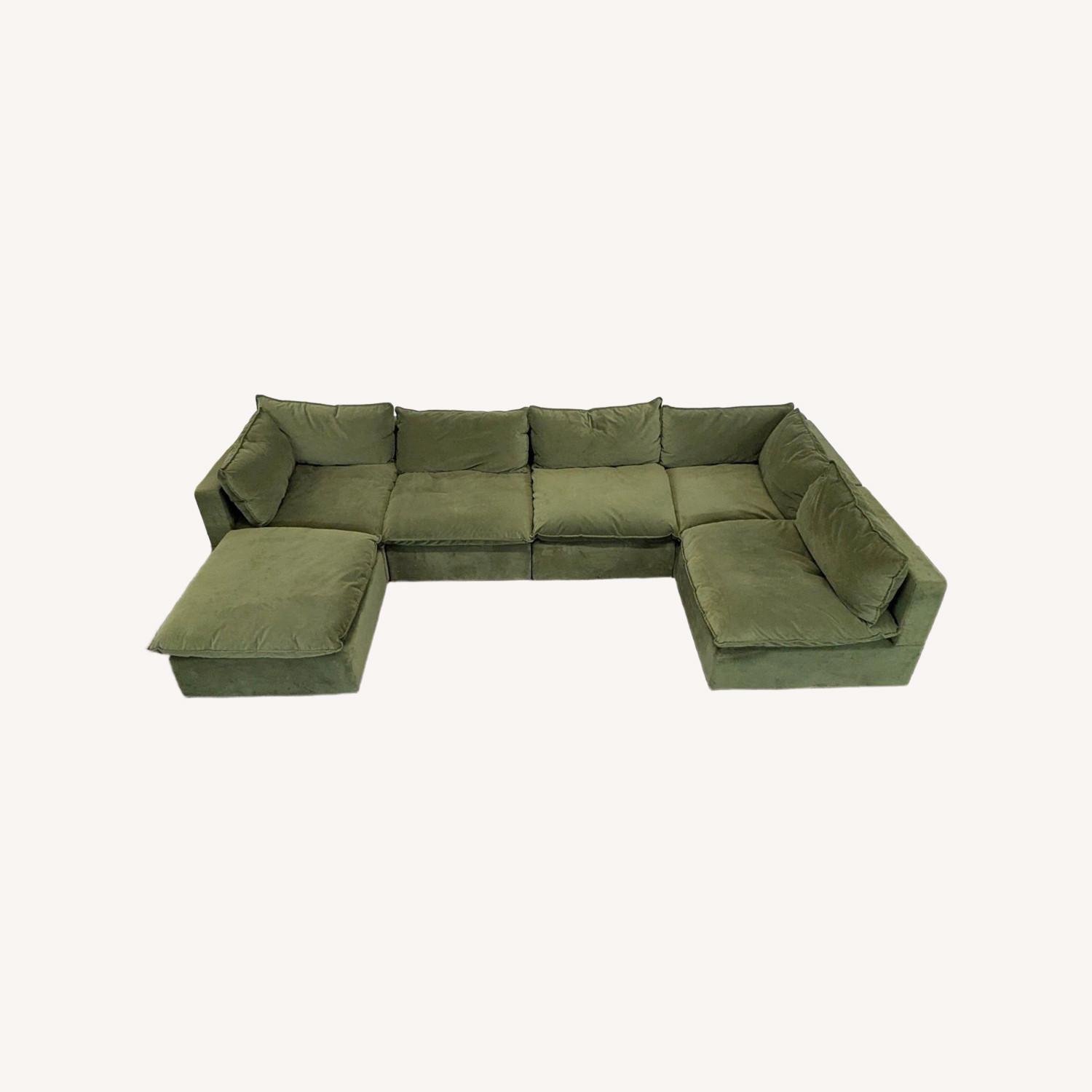 Seller's Notes:This Albany Park sectional offers roomy seating and luxurious comfort in a stylish olive green velvet. Its L-shape design with a chaise lounge is perfect for relaxing or entertaining. Deep cushions and plush pillows provide cozy support. Ideal for any living room looking for a modern, inviting look.