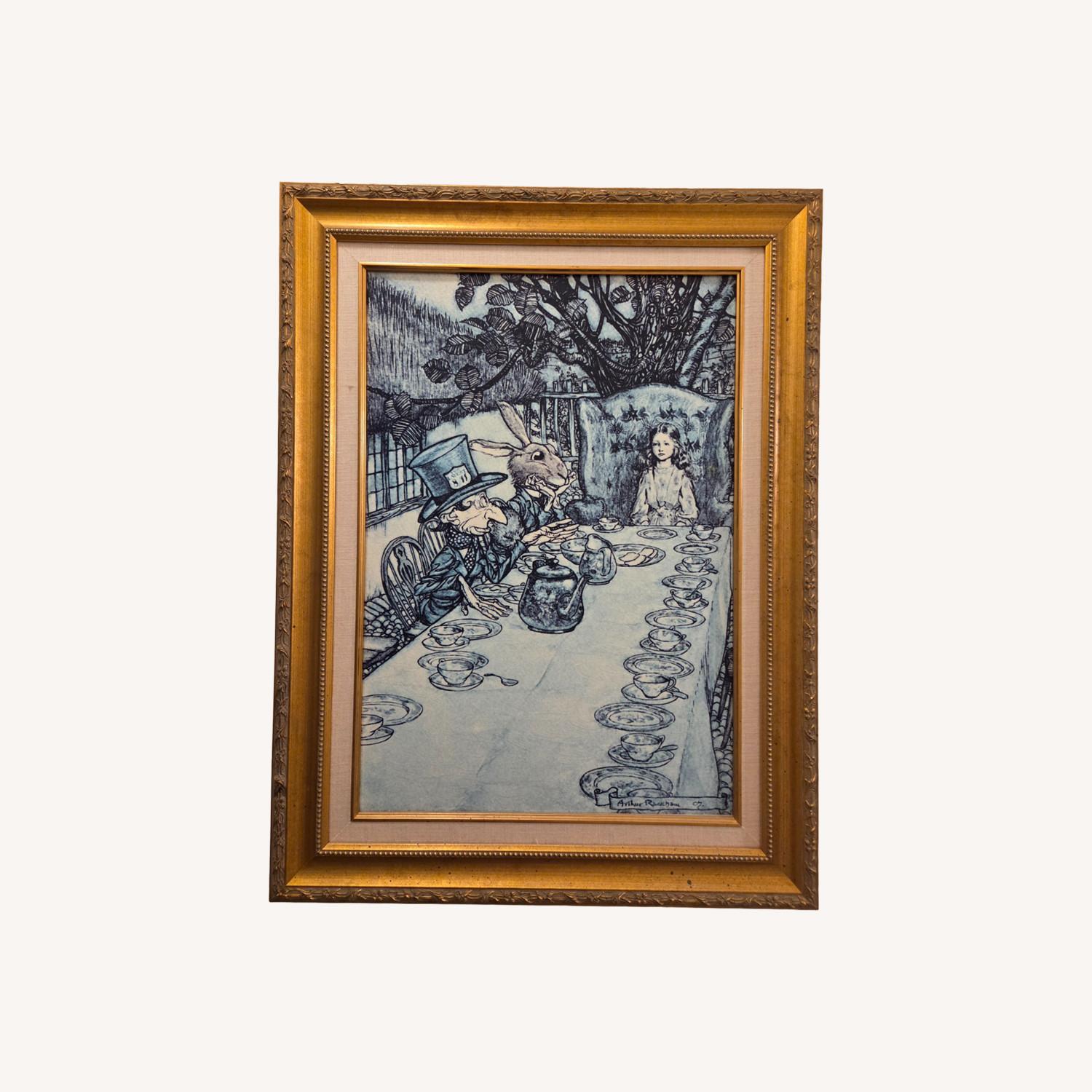 Seller's Notes:Custom ordered oil on canvas reproduction of the Mad Hatter's Tea Party illustration by Arthur Rackham in the 1907 edition. Custom framed at Michaels. Does not include glass covers per the framer's suggestion. Wire hanger at back for easy installation. No flaws.