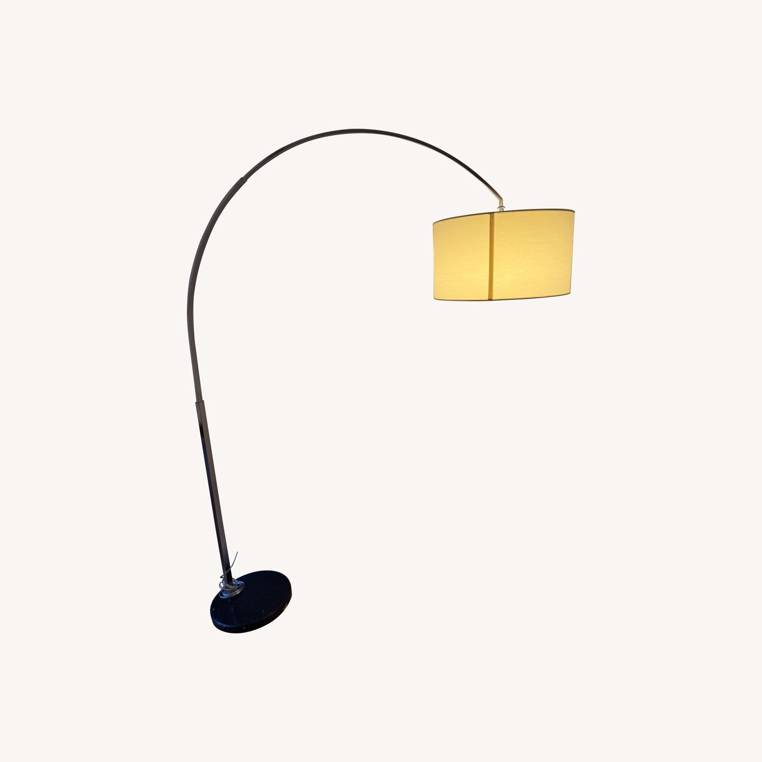 Elevate your space with this sleek arched floor lamp. Crafted from metal with a linen drum shade in oatmeal, it brings a warm glow to any room. Adjust the extension for a custom lighting setup. This modern piece is perfect for both residential and non-residential spaces.