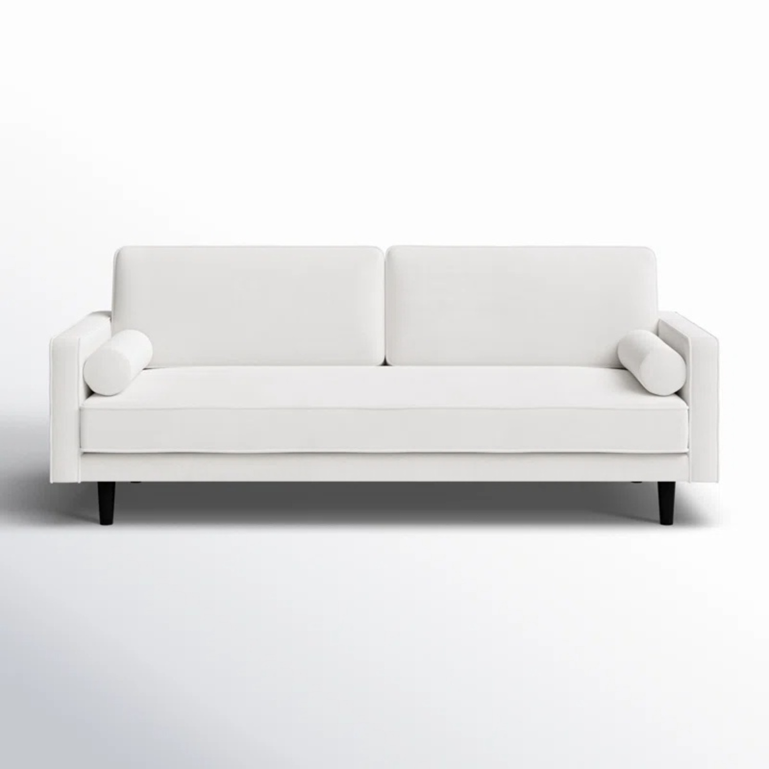 Seller's Notes:This couch is only a few years old and has served me well in my small one-bedroom. The neutral color and sleek design means it goes with any decor—you can dress it up with colorful pillows or throws to make it pop. It's comfy though; you can settle in and watch a long movie with no issue. It fits three adults comfortably. It's in good condition, was fully steam cleaned last year, but does have some discoloration toward the center and left side, which I don't think anyone would notice unless you knew it was there.