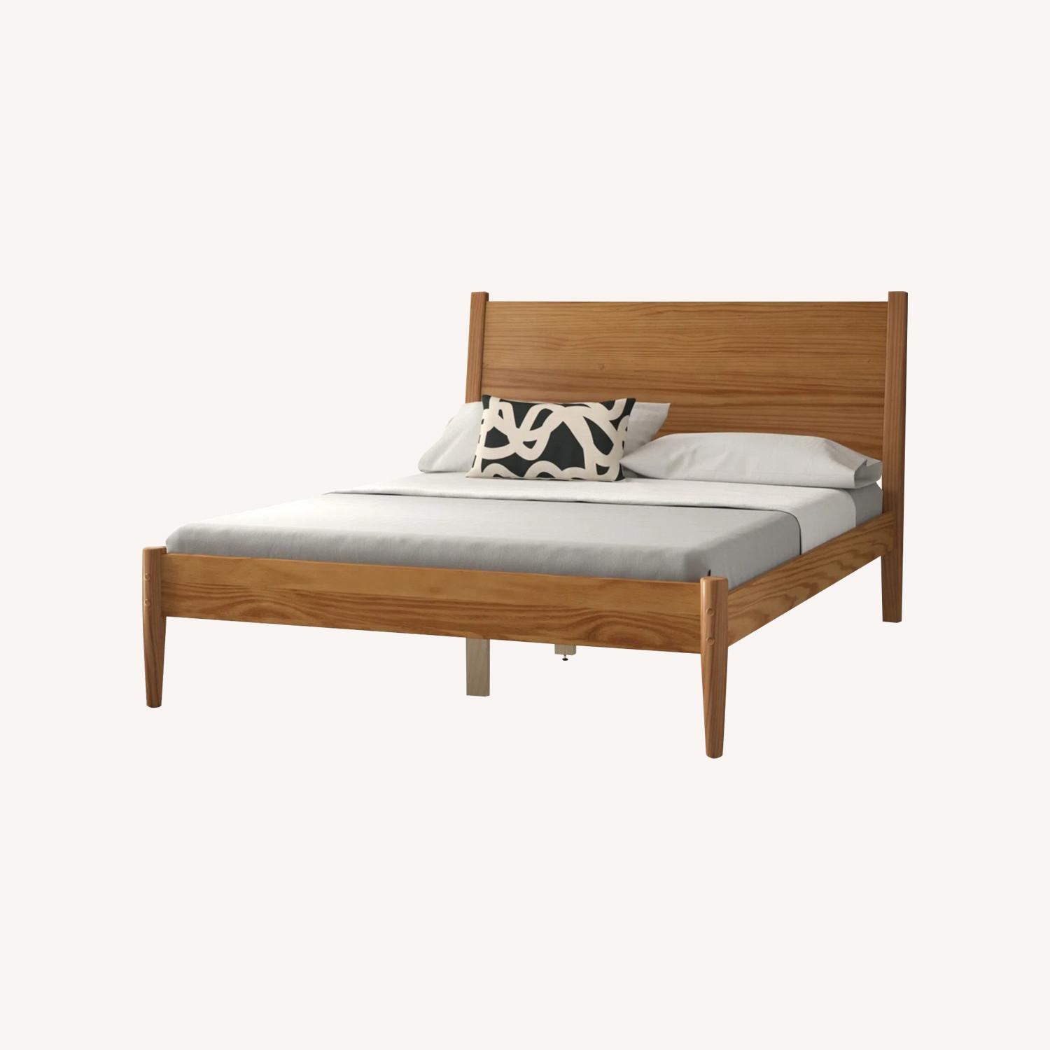 Seller's Notes:The bed showcases a smooth headboard with extended posts and round tapering legs - details that nod to a mid-century modern design aesthetic. It is constructed from solid wood with a rich protective finish that further enhances the natural beauty of the wood. The slat roll foundation means there is no need for a box spring - just top with the mattress of your choice (sold separately). Make up with crisp linens for a refined, tailored look.