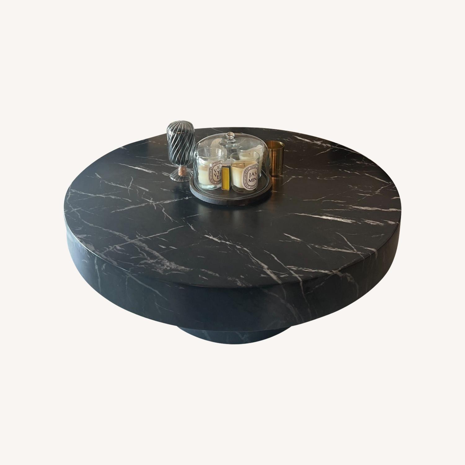 Seller's Notes:Looking to sell my almost-new AllModern stone coffee table, which I've owned for less than a year. This stylish piece features a concrete base that’s cool to the touch, topped with a stunning marble finish that adds a touch of elegance to any room. It's sturdy and solid, weighing about 70 lbs, yet practical for shipping as it easily detaches into two pieces. There is one very tiny surface level scratch that's shown in the pictures. This peice is perfect for anyone seeking both form and function in their living space!" ~RL