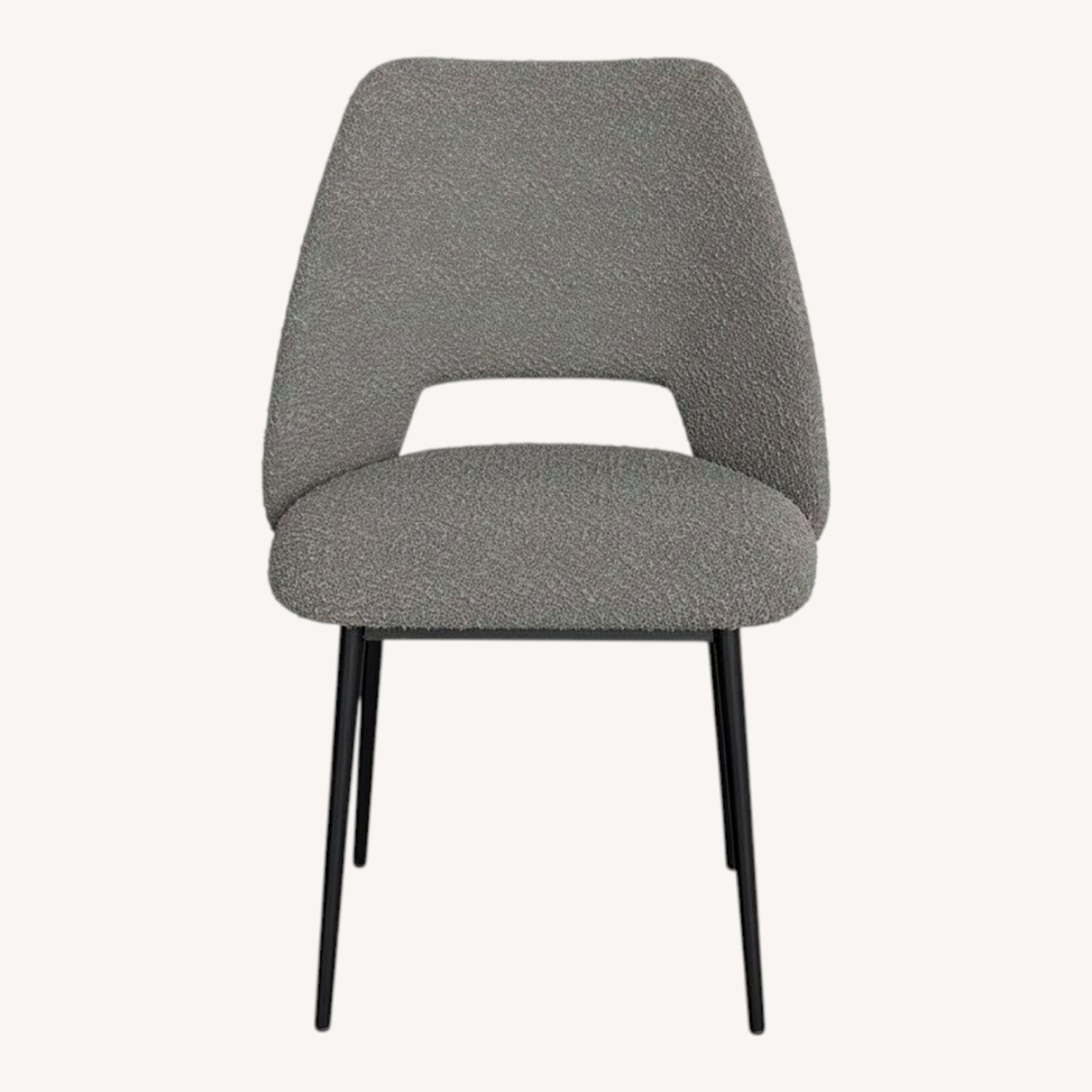 Seller's Notes:Luxe meets lunch. Blending plush bouclé upholstery with a powder-coated steel base, this set of dining chairs brings comfort + contrast to your eating space while maintaining a feeling of openness. A gently curved backrest and cutout provide support and complement the tactile upholstery. Foam padding ensures plenty of cushioning.
