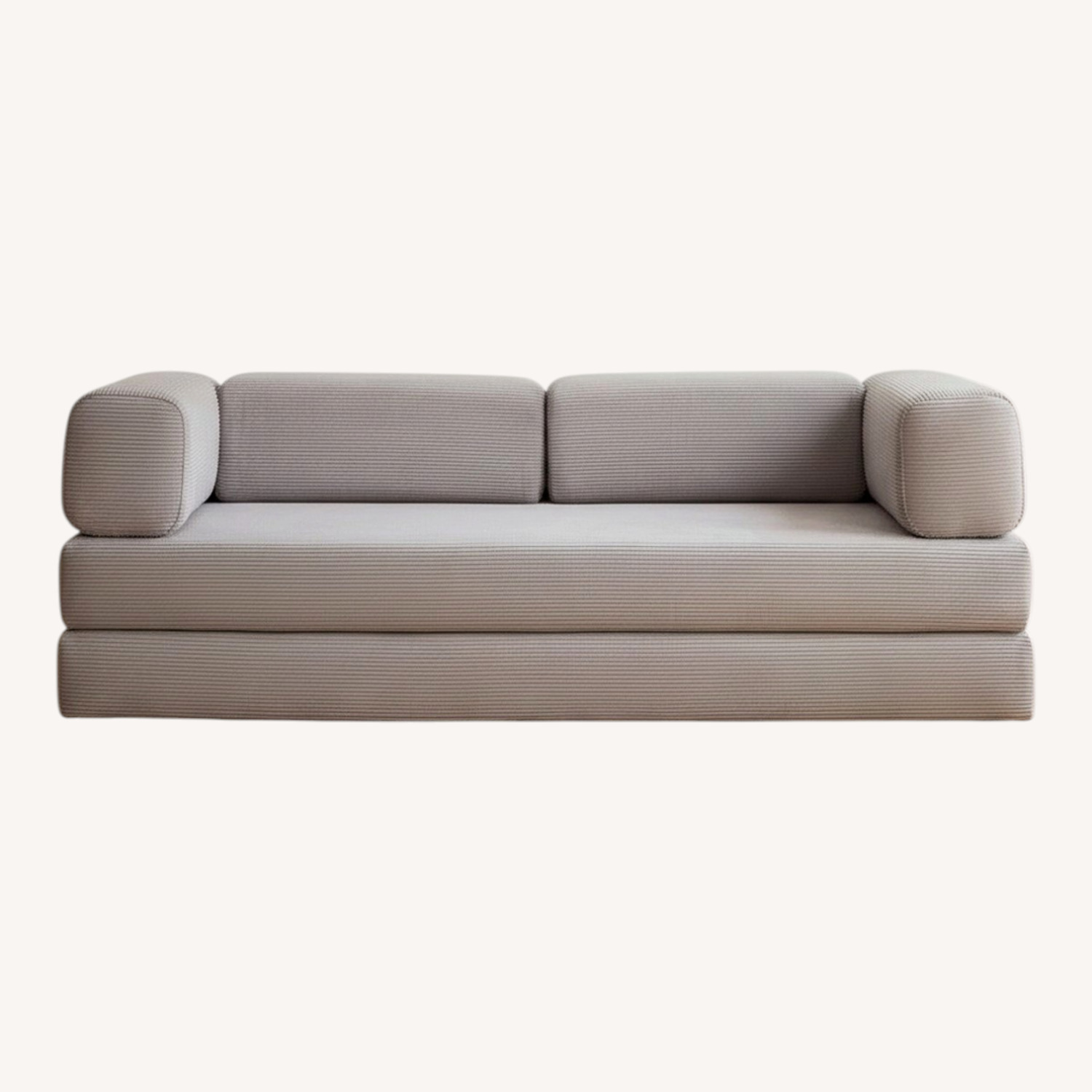 King-Size Versatility: Upgrade your living space with this king size sofa bed. Its convertible 3-seat design allows easy adjustment of the armrests, seamlessly transforming from a stylish lounge couch to a spacious sleeper, perfect for living rooms, bedrooms, or studios. Cozy Corduroy Comfort: Wrapped in breathable small-streak corduroy fabric and filled with high-density foam, this boneless sofa couch offers exceptional pressure relief and firm support. Soft cylindrical pillows complete the experience for ultimate relaxation. Stability You Can Trust: Built with a fixed-shape frame and equipped with a non-slip pad underneath, this floor sofa ensures reliable stability on any surface. The breathable fabric also enhances air circulation, adding both comfort and safety to your home. Spacious & Functional: Enjoy generous lounging with the sofa size of 78"L x 39"W x 26"H and a sleeping surface measuring 78"L x 78"W x 9"H. Whether for a cozy movie night or a restful night's sleep, this sofa bed easily meets all your needs. No Assembly Needed: Skip complicated setups! This folding floor couch arrives ready to use. Simply unfold it into your preferred configuration and relax instantly—ideal for dynamic spaces seeking both style and convenience.