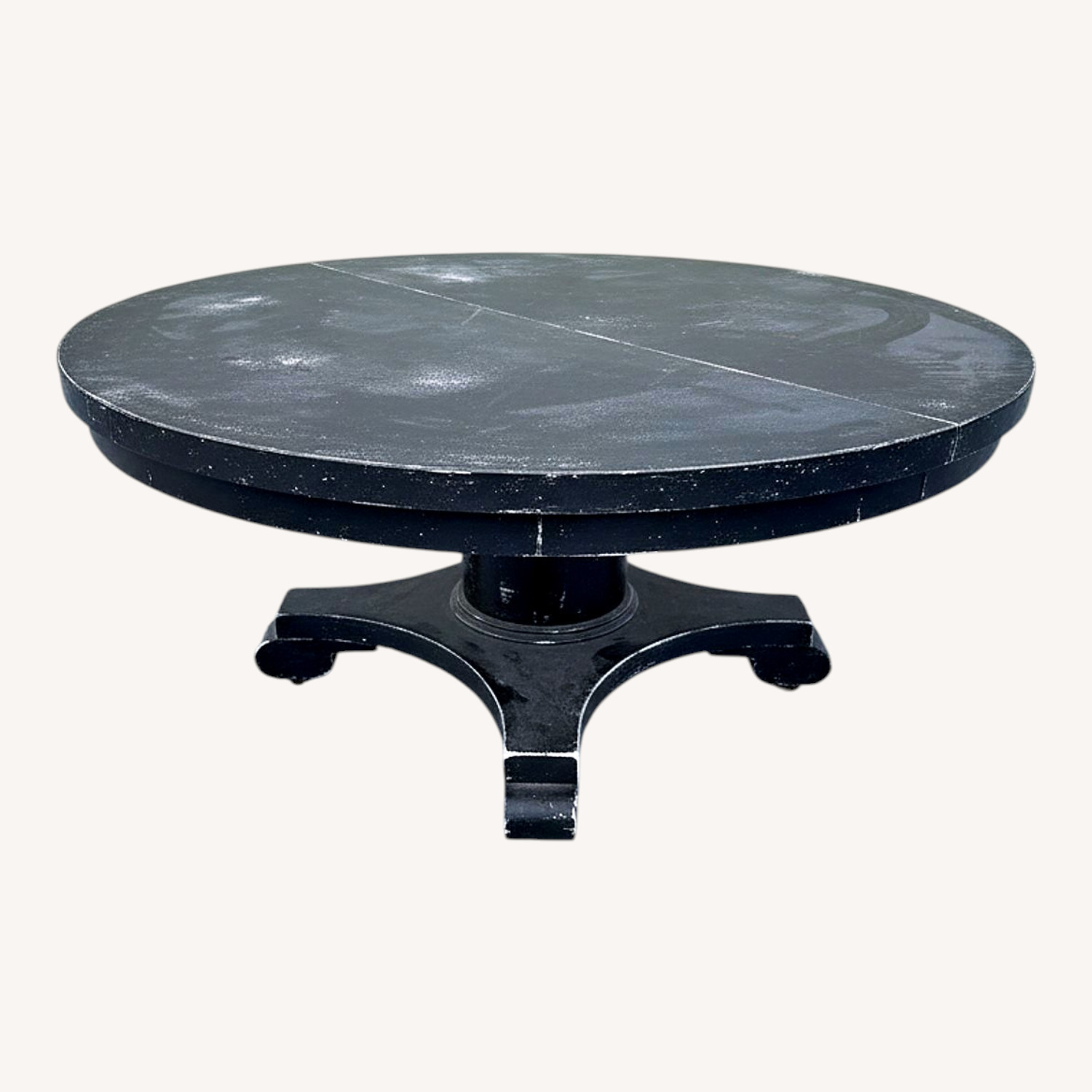 Seller's Notes:Round large coffee table , on wheels. Rustic black.