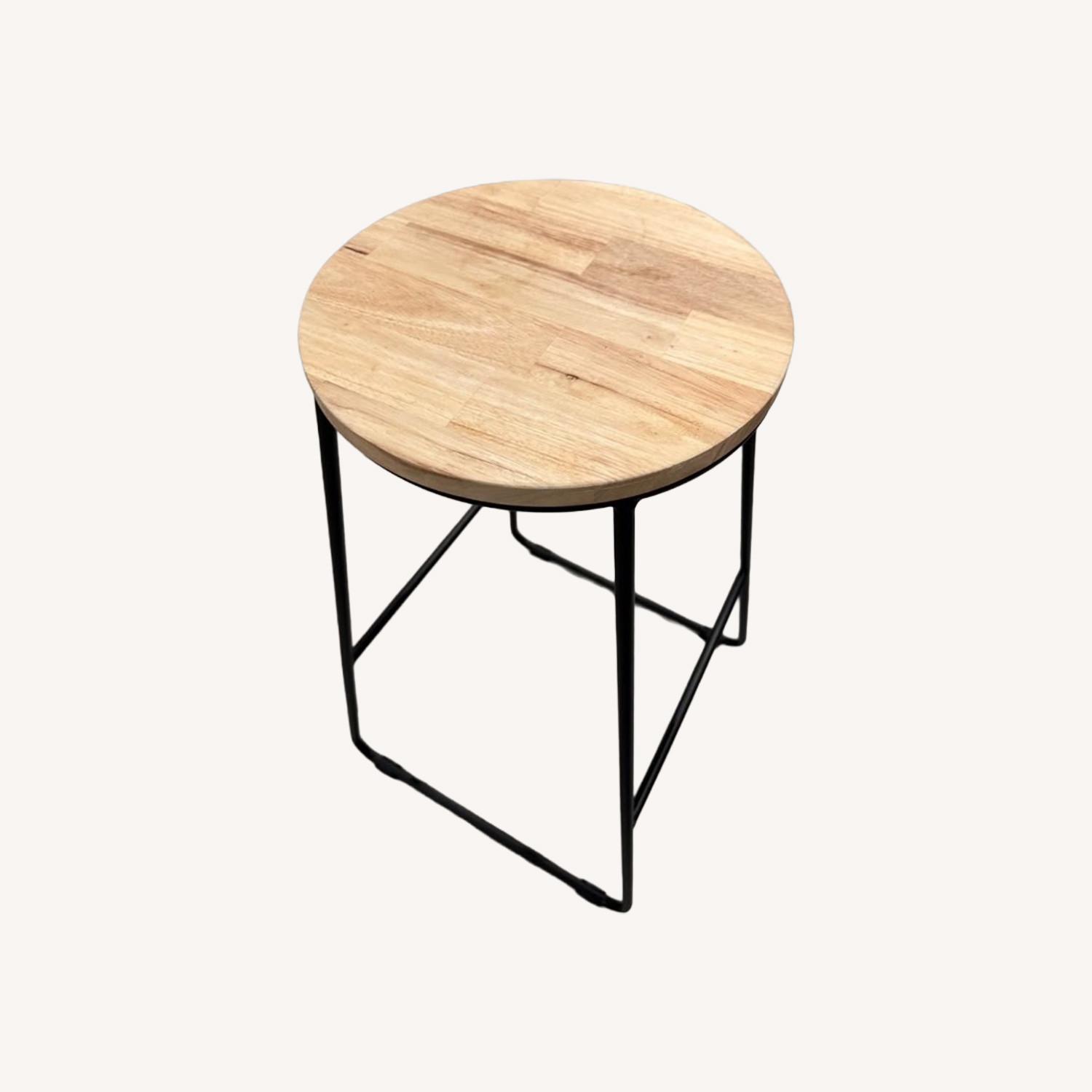 Seller's Notes:Selling a set of 2 modern wooden stools/chairs with solid wood round seats and sturdy black metal legs. Clean, minimalist design that fits well in kitchens, living rooms, or as extra seating.No damage. Also brought it for house and it has opened from box and assembled everything but haven't used due to the color not match with floor