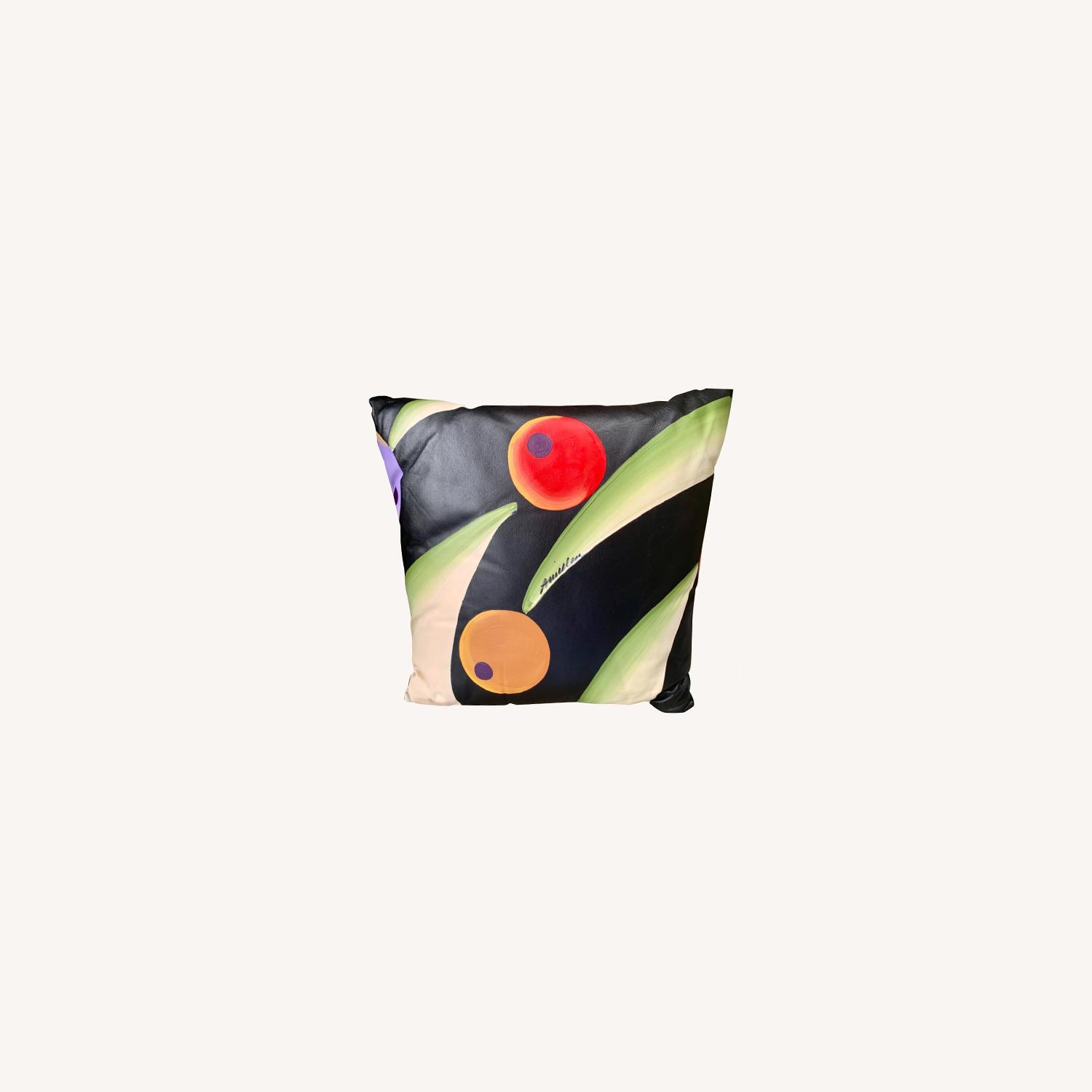Seller's Notes:Anna Millea Handpainted Leather Pillow. Excellent condition. Handpainted and signed by the artist.