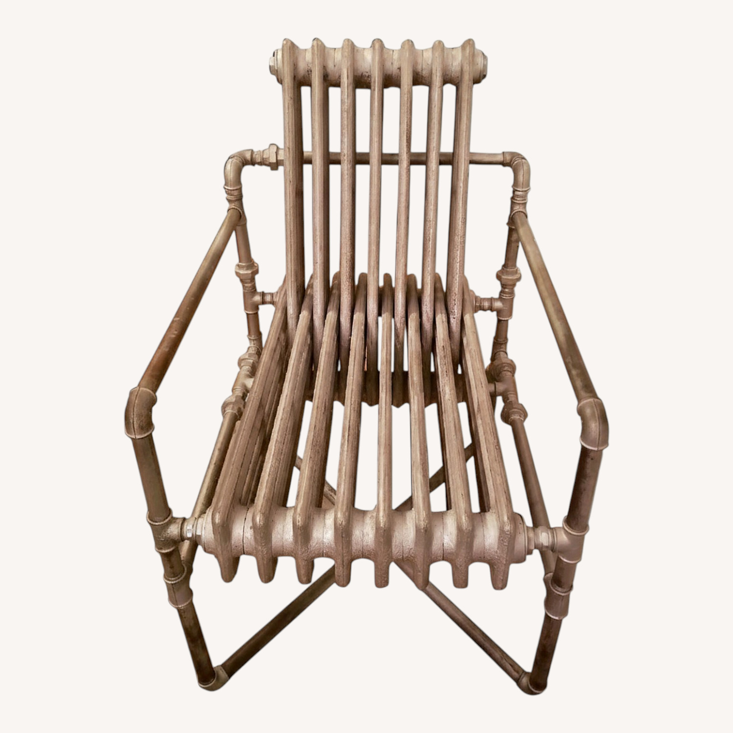 Seller's Notes:Procured through Anthropologie, this is a statement piece…a chair constructed from 2 radiators. The radiators are unpainted and in their natural state. The chair is decently comfortable to sit in, and a great conversation starter.