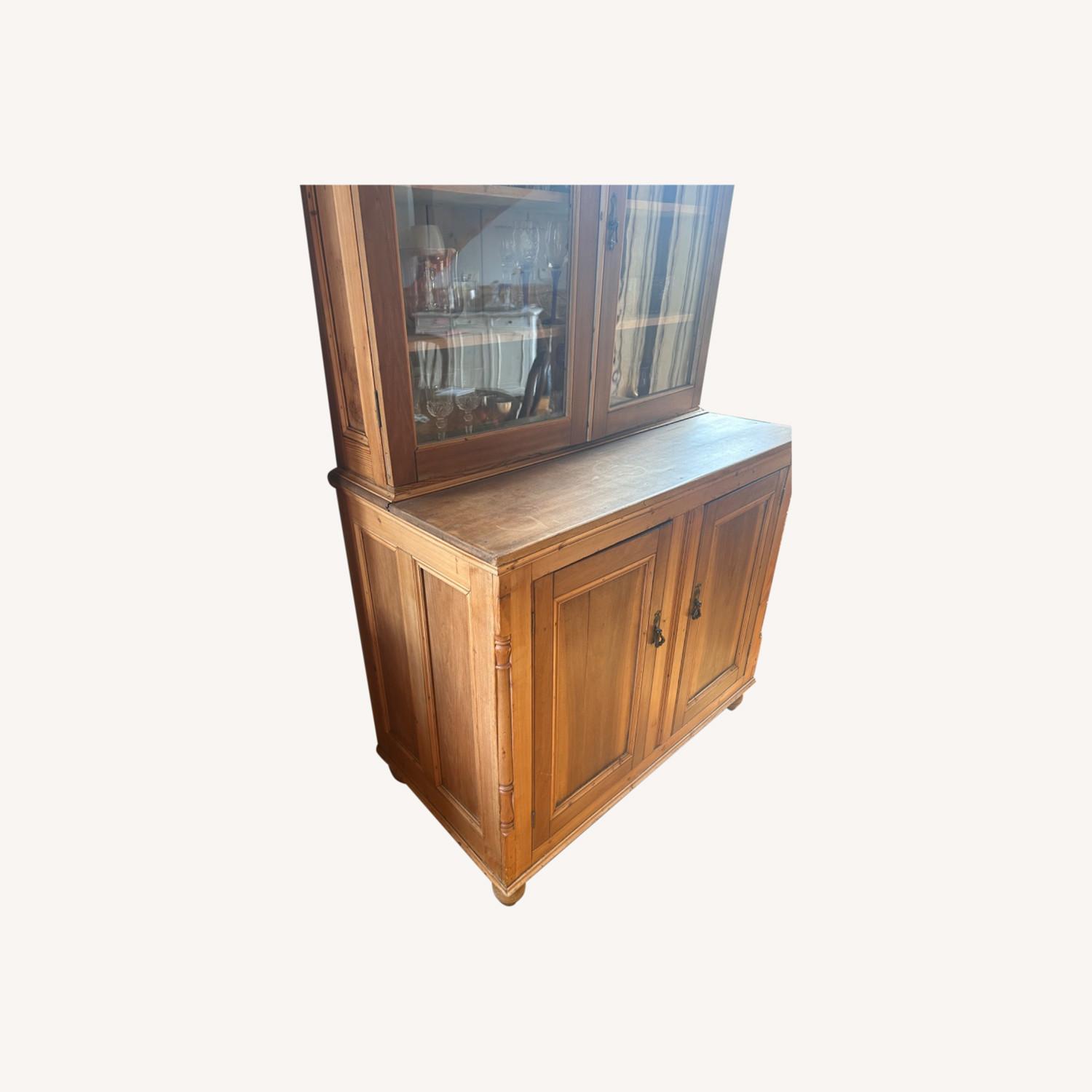 Seller's Notes:China Hutch, 2 glass doors with 3 shelves behind 2 doors below with one shelf. Will come apart in two pieces for moving.