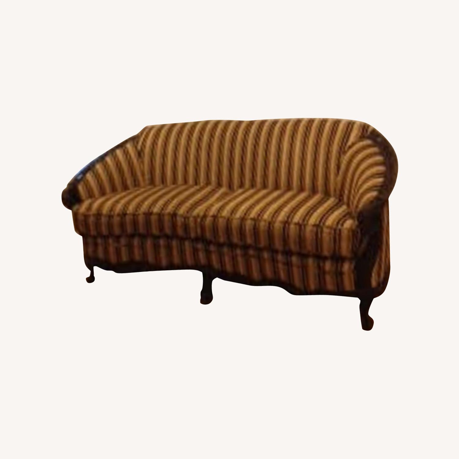 Seller's Notes:Antique sofa with carved wood in excellent condition. French cut velvet stripe, Gold & Brown Bought several years ago from Furnish Green in Manhattan for 800$ Kept in great condition. A truly one of a kind addition to any home. 78” wide (6 ft.- 6 in.) 35” deep 32” high at back