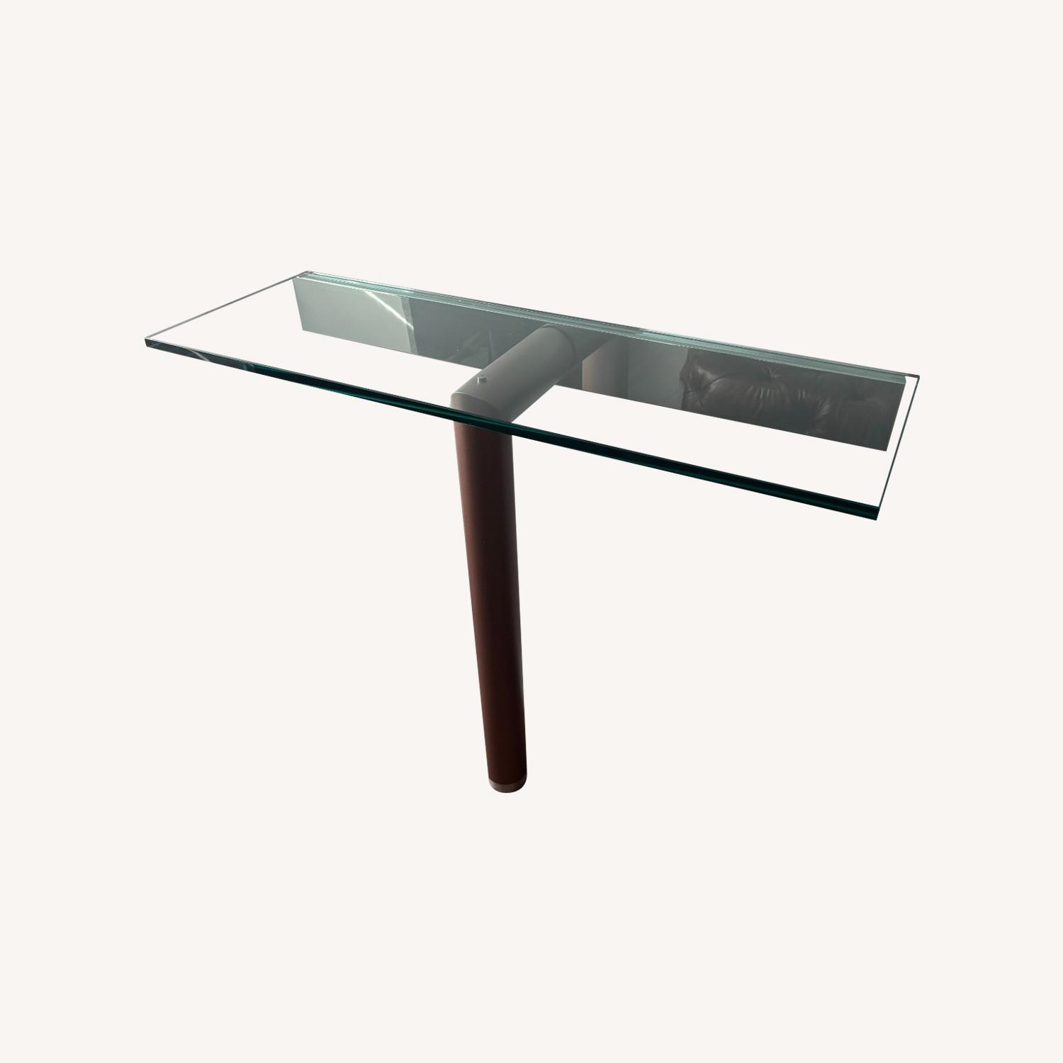 Glass top 51" W x 18" D, leg projection 11.5"
