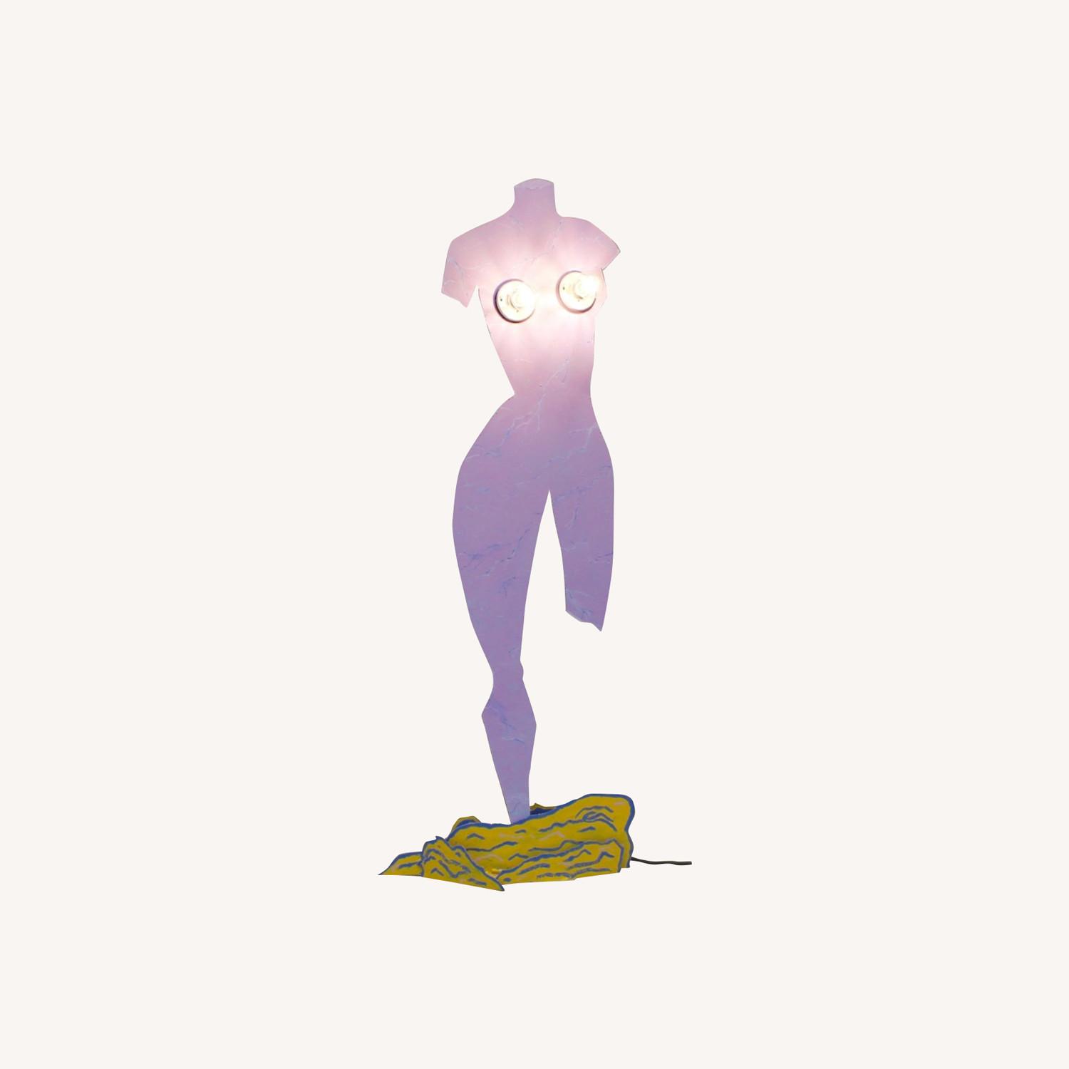 Seller's Notes:Large painted steel floor lamp, around 6ft tall. Female shaped sculptural shape that provides great lighting. Made in 2018. This use to be on display in a gallery in Dallas Texas, however the gallery closed and has been in storage for 5 years. I am looking for new home, as this is a custom sculptural furniture piece that is sure to bring new life a home. Don’t hesitate to ask any question about the piece or make a reasonable offer!