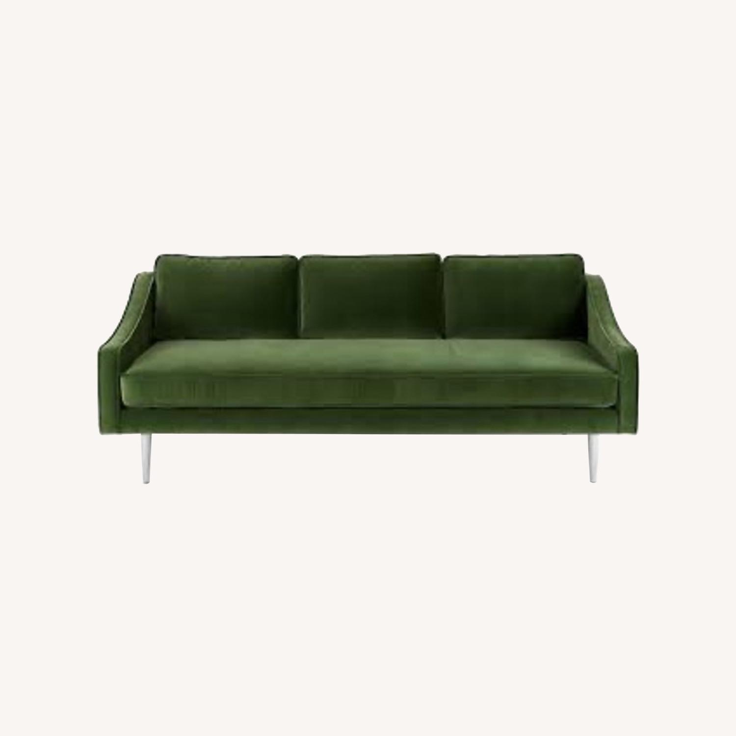Seller's Notes:Beautiful green velvet sofa. Been safely in storage and hardly used.