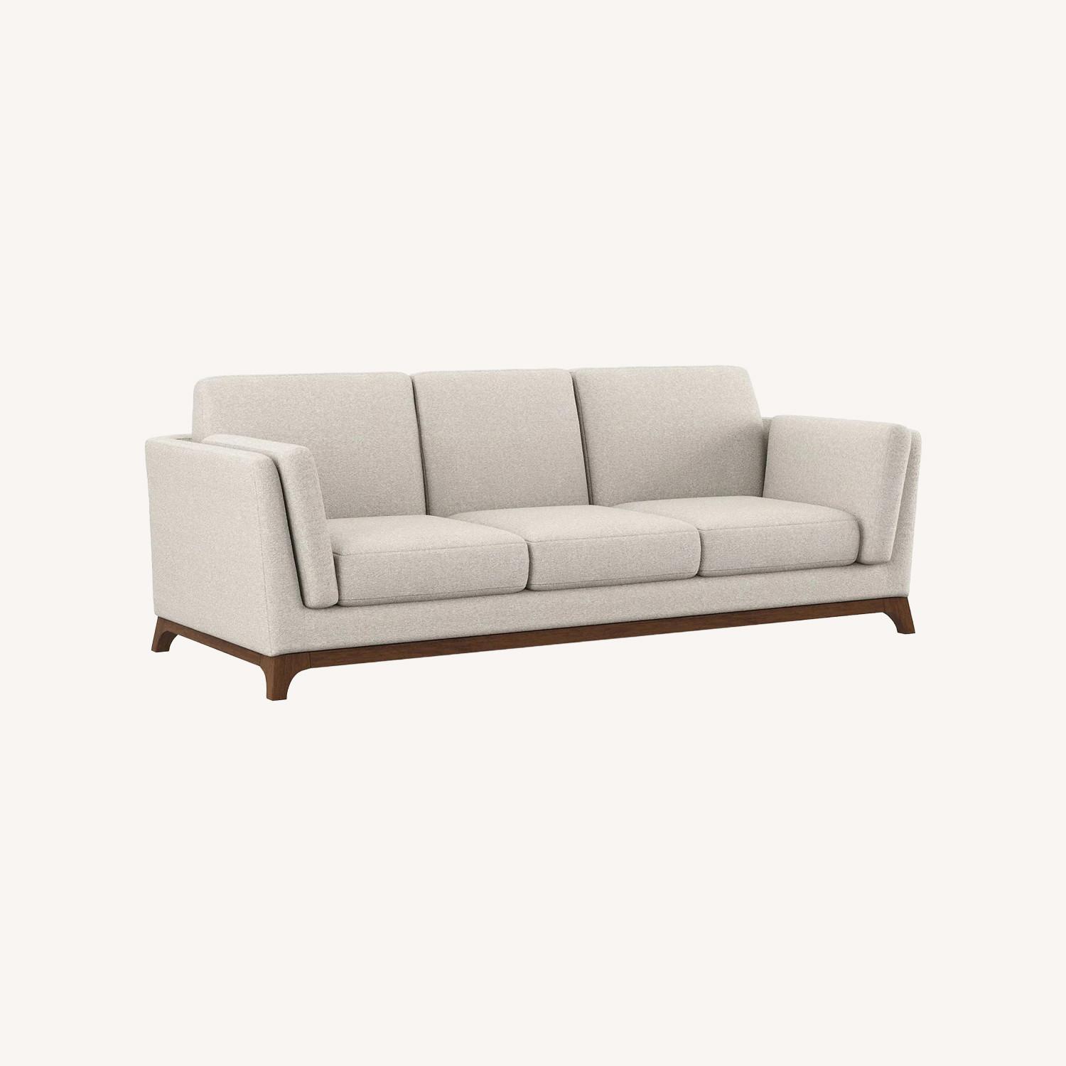 Seller's Notes:Take a load off. Intentionally designed to sit low to the ground, the Ceni Sofa is a contemporary take on a vintage silhouette. Designed with loose cushions, track arm rests, and a solid wood base, the Ceni features a firmly padded back cushion and medium-firm seat composed of sinuous springs and foam for a deep-seated lounge experience. A bit of bounce relaxes for increased comfort overtime.