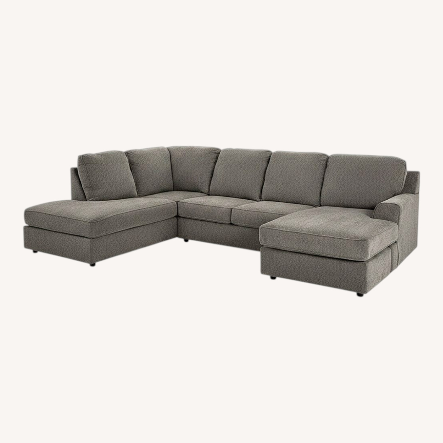 Seller's Notes:This is a large, comfortable 3-piece Ashley Furniture Darcy Sectional in Cobblestone (Dark Gray). The fabric is a durable, soft polyester that is very easy to clean. It features flared arms and plush cushions. It’s in good shape and comes from a home that values furniture care. Perfect for a large living room or media room.