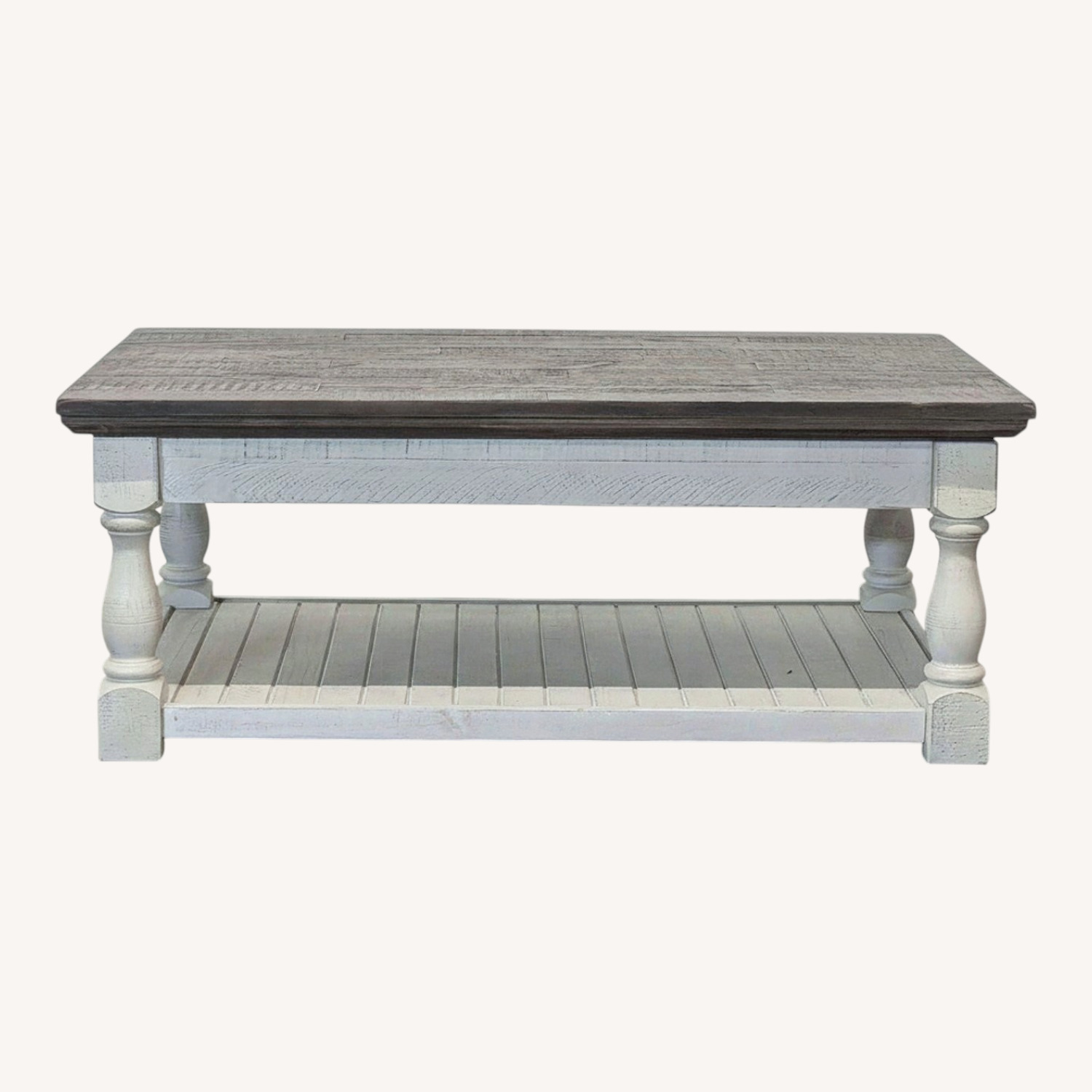 Seller's Notes:Two tone farmhouse style with fixed shelf made of pine wood, pine veneer and engineered wood.