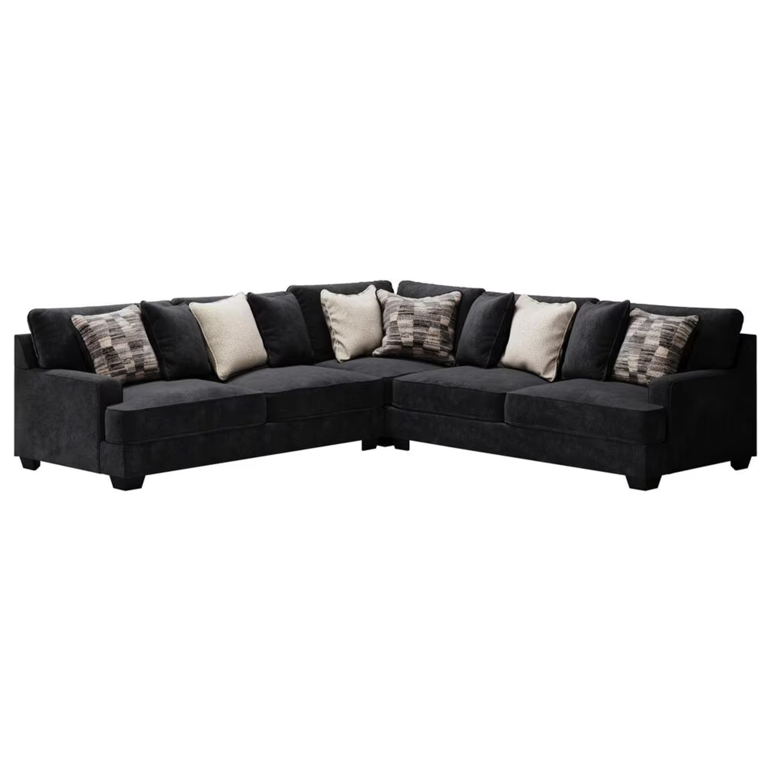 A match made in heaven, the Lavernett sectional marries a cool, contemporary look and a decadently soft, plush microfiber feel. This irresistibly comfortable union is love at first touch at the end of a long day, or anytime you're ready to get serious about relaxing. Say I do to big-time comfort and style flanked by neatly finessed track arms in a clean, straightforward design. A medley of pillows in cream, black and gray blends effortlessly with any setting.
