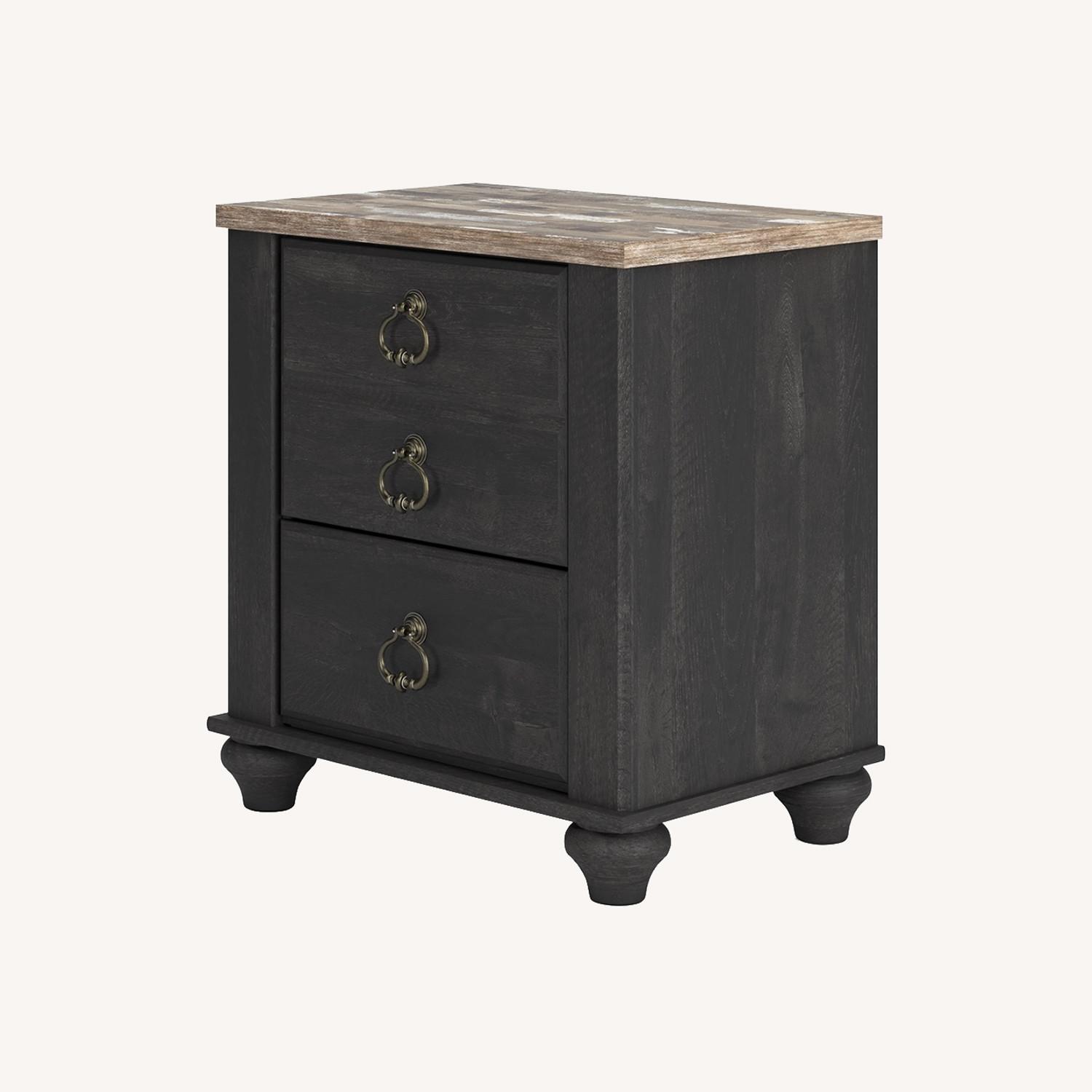 Charming French farmhouse aesthetics. Deep, industrial-inspired hues. The Nanforth nightstand balances beautiful simplicity with the luxurious details of yesteryear. The distinct two-tone finish is bold without sacrificing the piece's quaint character. And with USB ports and smooth-gliding drawers for your respective bedside charging and storage needs, this nightstand's functionality goes hand-in-hand with your unique eye for vintage-inspired design.