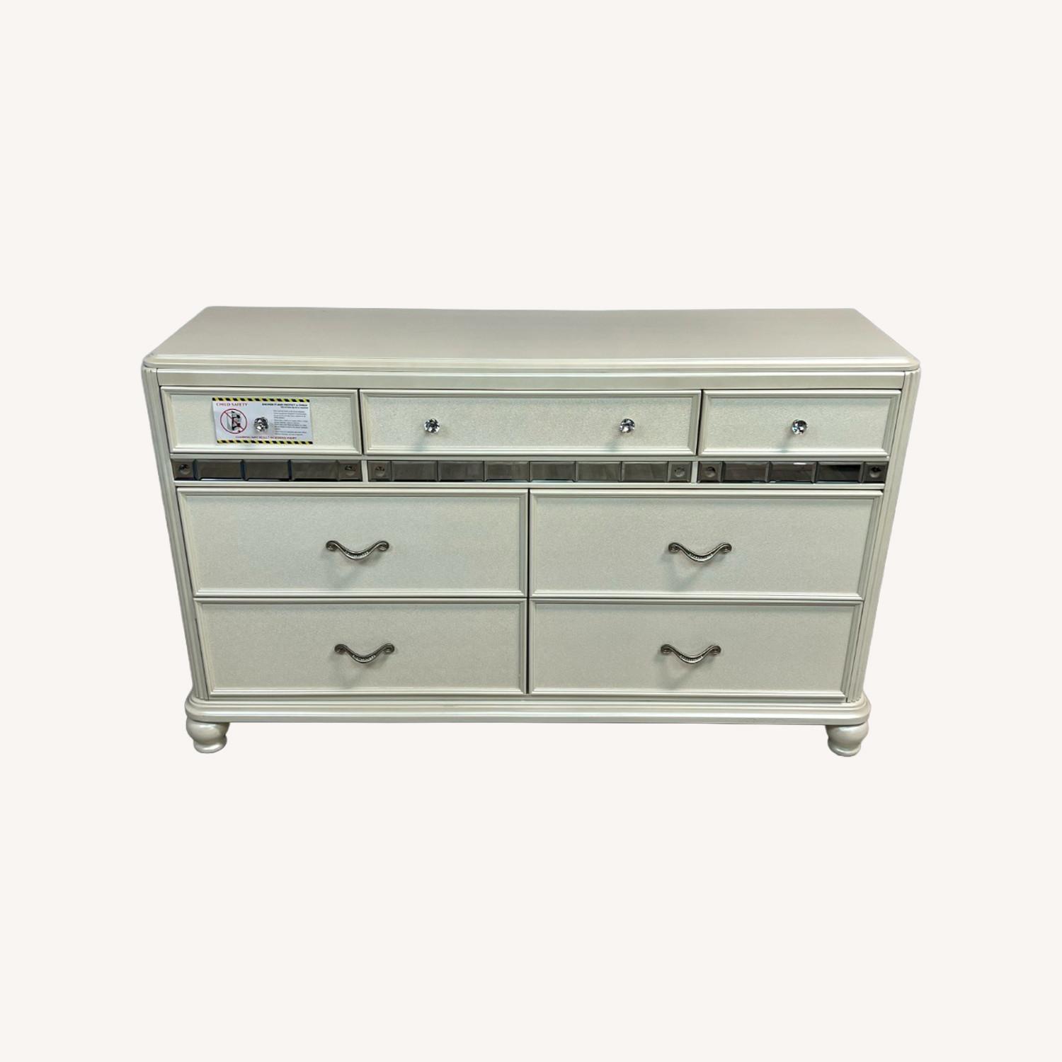 Seller's Notes: The Avalon Furniture Kaleidoscope Dresser brings contemporary elegance to any bedroom with its striking geometric design and refined craftsmanship. Featuring multiple drawers with smooth gliding mechanisms, this statement piece combines functional storage with artistic flair. The distinctive kaleidoscope pattern adds visual intrigue while maintaining a polished aesthetic that complements modern and eclectic interiors alike. Expertly constructed for durability and style, this dresser serves as both a practical storage solution and a sophisticated focal point for your space.