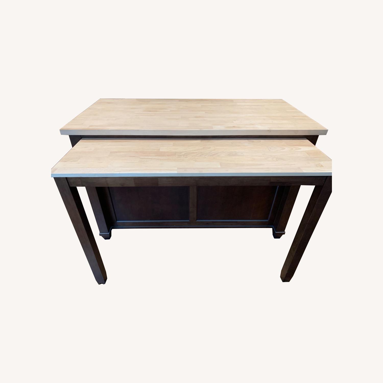 Seller's Notes:Bought one year ago for a kitchen remodel. Never used as kitchen design changed. Stored inside, in dining room, over this time. No marks, blemishes or stains. Pull out seating extends when needed. Soft close drawers for storage.