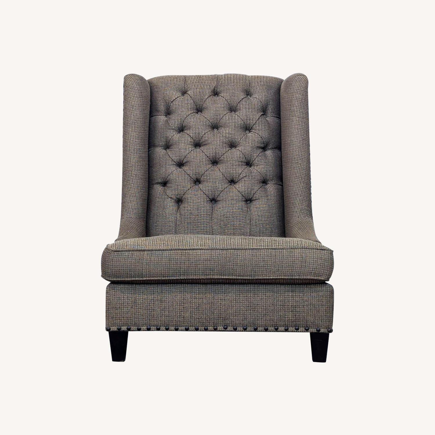 Seller's Notes:Transitional wingback chair with button tufted back and decorative nailhead trim.