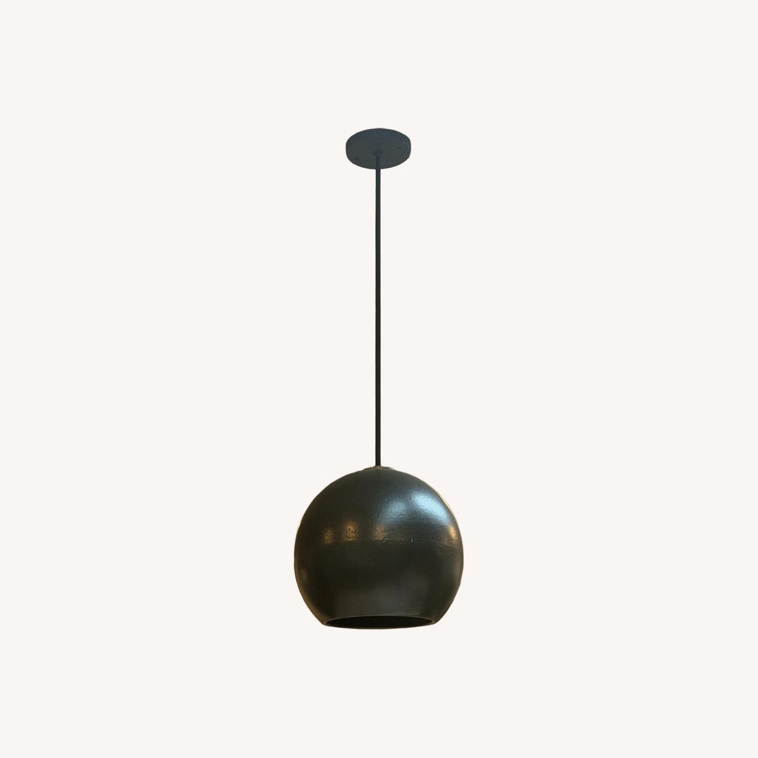 Seller's Notes:Set of three black ceramic globe pendant lights in very good condition. Clean, modern, architectural look—great over a kitchen island, bar, or breakfast nook. Solid ceramic (not thin metal), nice scale, and they look fantastic in a row. Selling as a set of 3.