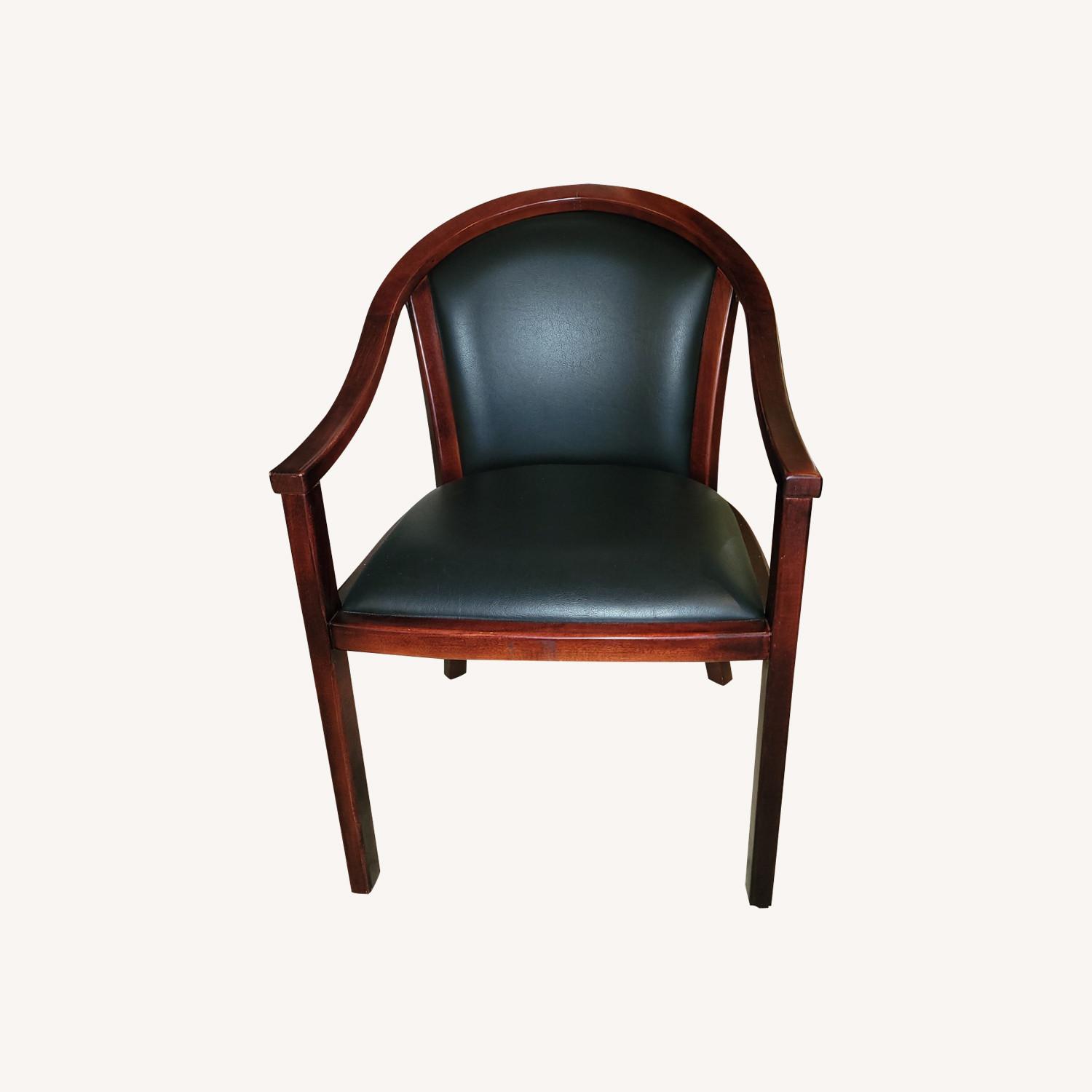 Seller's Notes:RedWood color all wood frame chairs with faux leather back and seat. These chairs were imported from Argentina. Excellent quality. Chairs are beautiful and elegant. Perfect as an accent chair, Office side chair or reception chair. These chairs are in perfect condition. No scratches or tears.