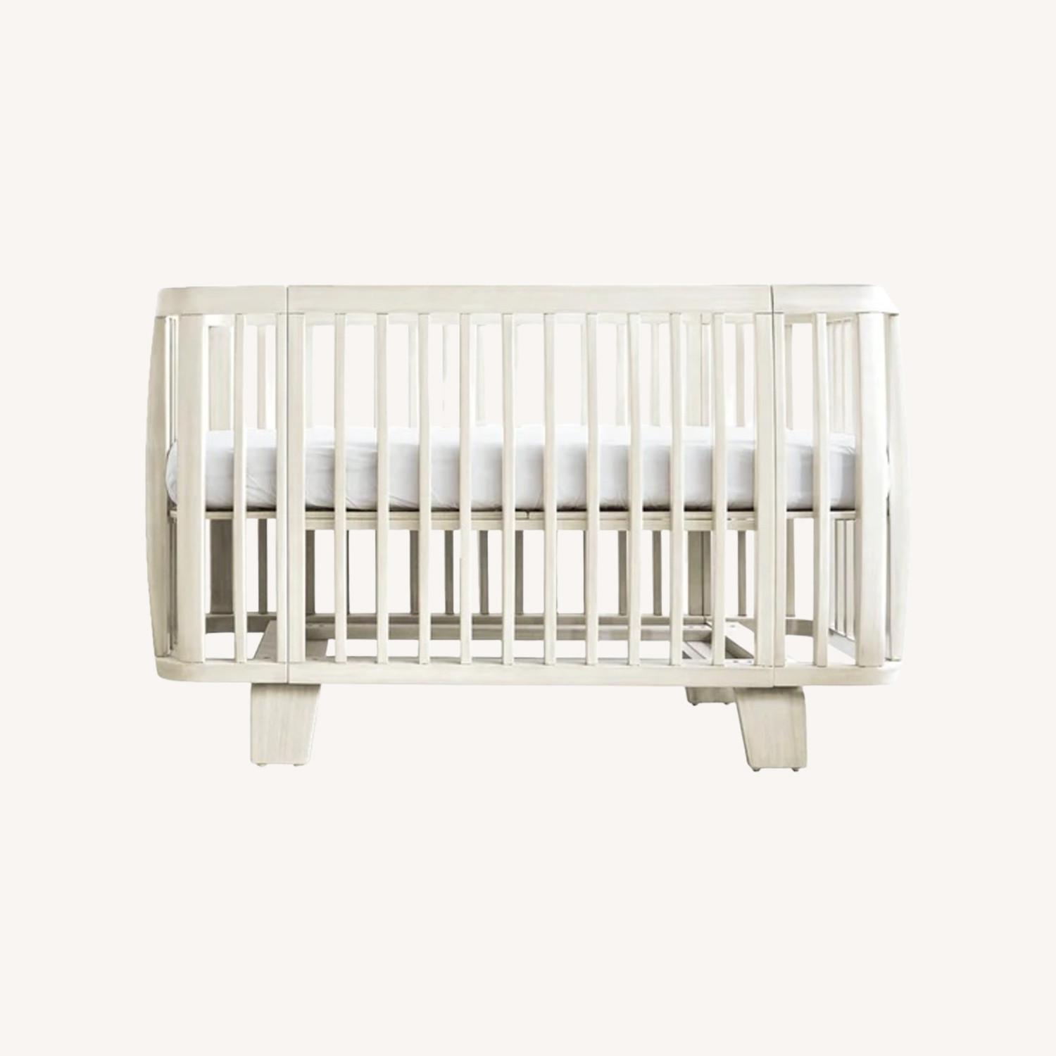 Seller's Notes:Selling our Bloom Baby Retro Crib in the White Wash finish, including the convertible toddler rail and the front crib bar panel.