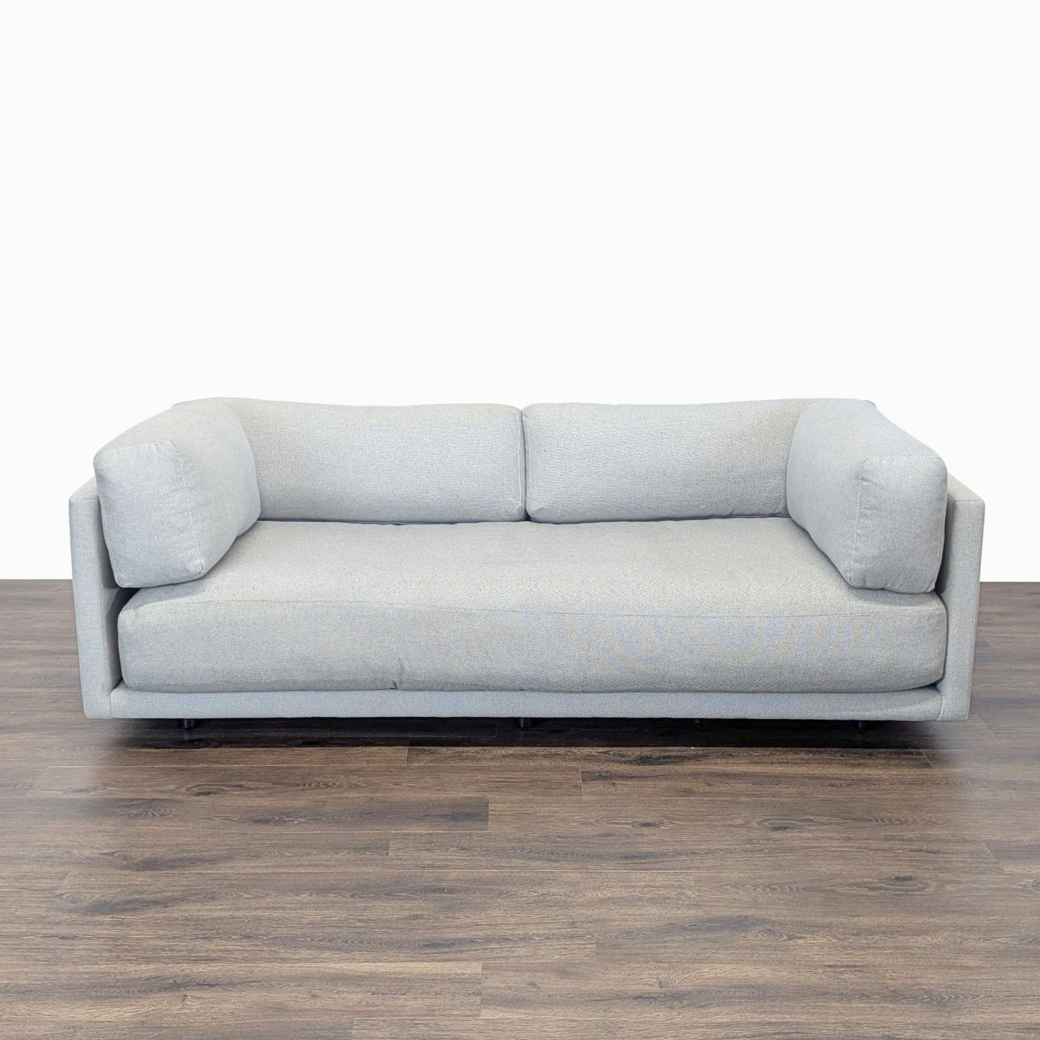 Seller's Notes:This BluDot 3-seat sofa is stylish and comfortable, featuring a clean, modern design with soft light grey fabric. The wide, plush cushions provide plenty of seating space for three people. Its sturdy build and neutral color make it perfect for any living room setting. Excellent for relaxing or entertaining guests.