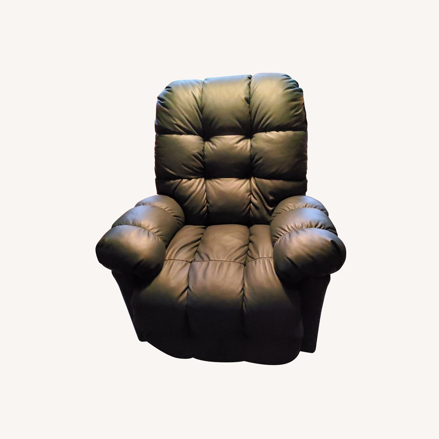 Used Burrow Vesper Black Leather Chair and Ottoman for sale on AptDeco