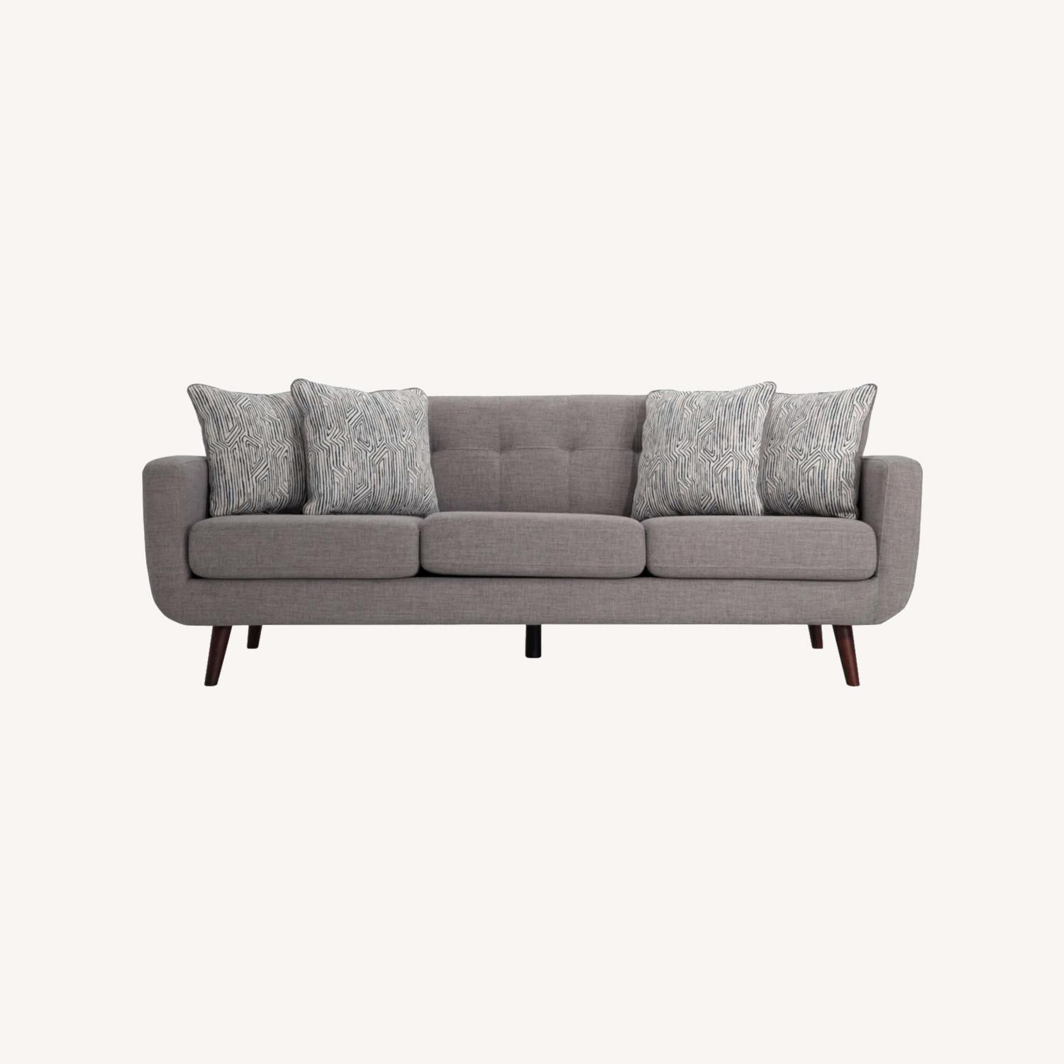 My Bettie Sofa is a mid-century modern beauty! Made of 100% polyester, this contemporary sofa sports four trendy accent pillows, understated track arms and slender, slightly flared wooden legs. Add in a comfy layer of my famous Bob-O-Pedic Memory Foam and a tufted seat back and you're ready to sit in comfort - and style, of course!