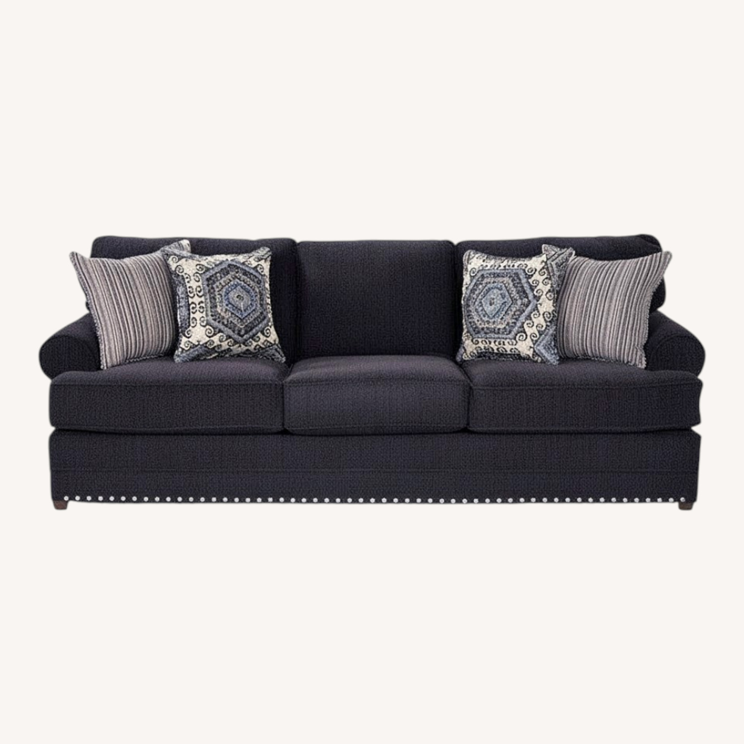 Used Queen Sleeper Sofa with Vintage Style Pillows for sale on AptDeco