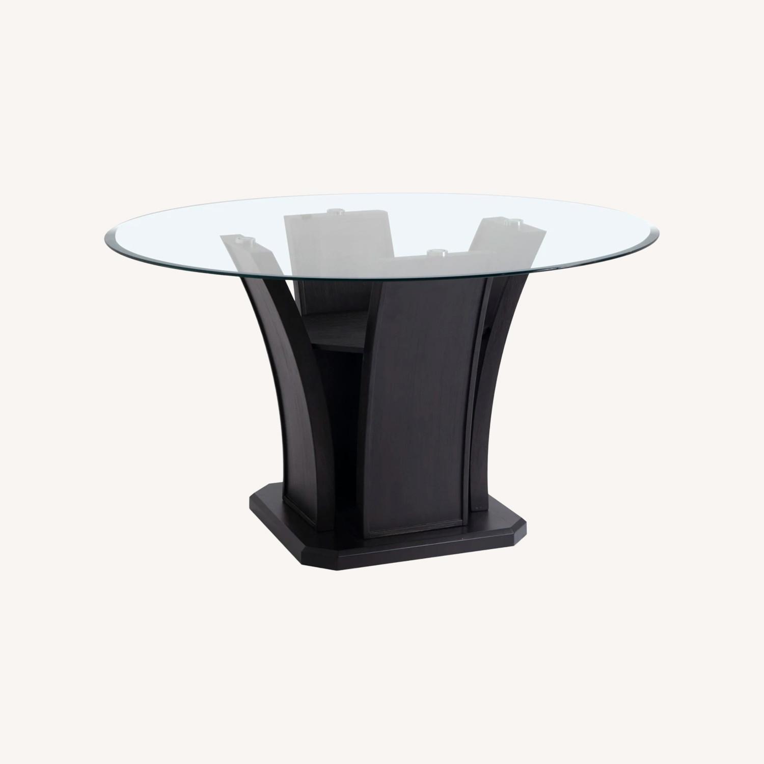 Seller's Notes:Update your dining room with my Cosmopolitan Round Dining Table! The shiny glass table top, stylized tulip base and deep espresso finish exude ultra contemporary vibes. And furthermore, you're getting contemporary flair at an untouchable value!