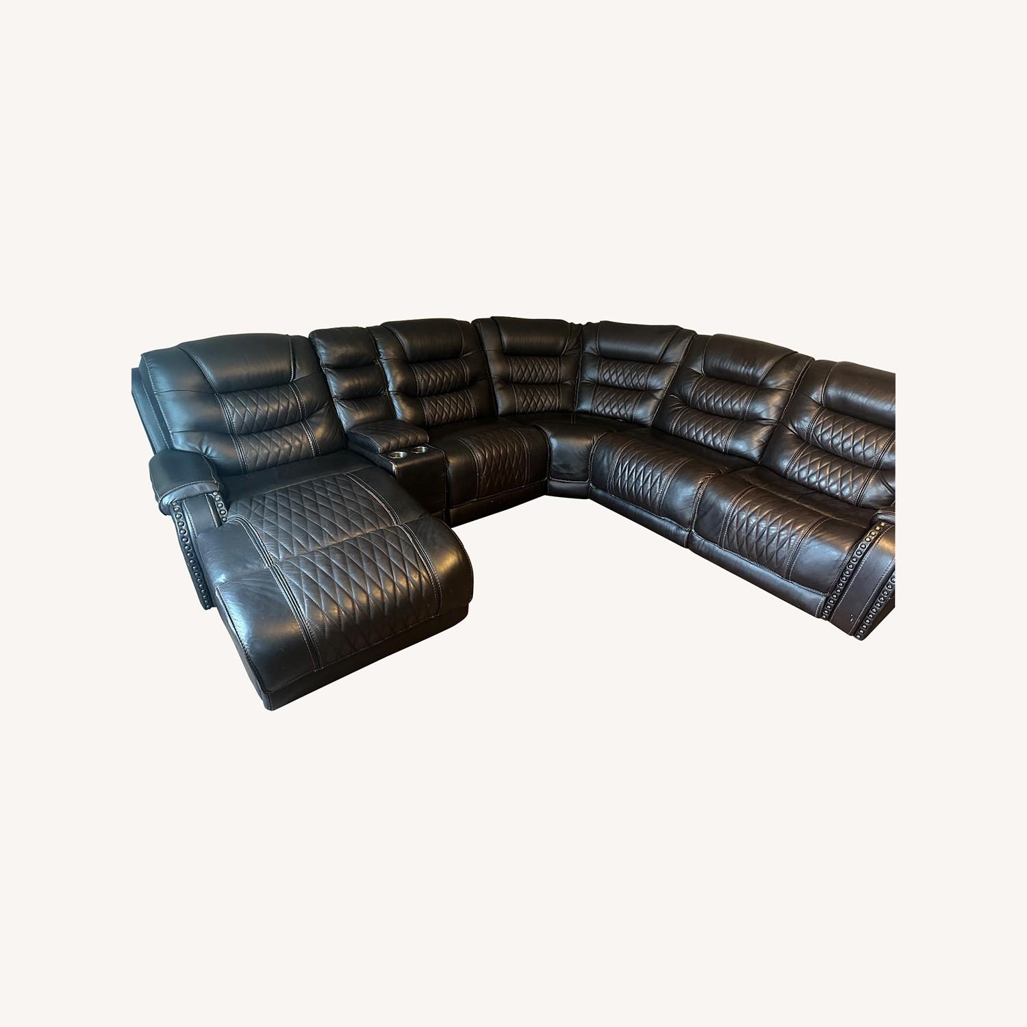 Seller's Notes:Good brown leather Sectional