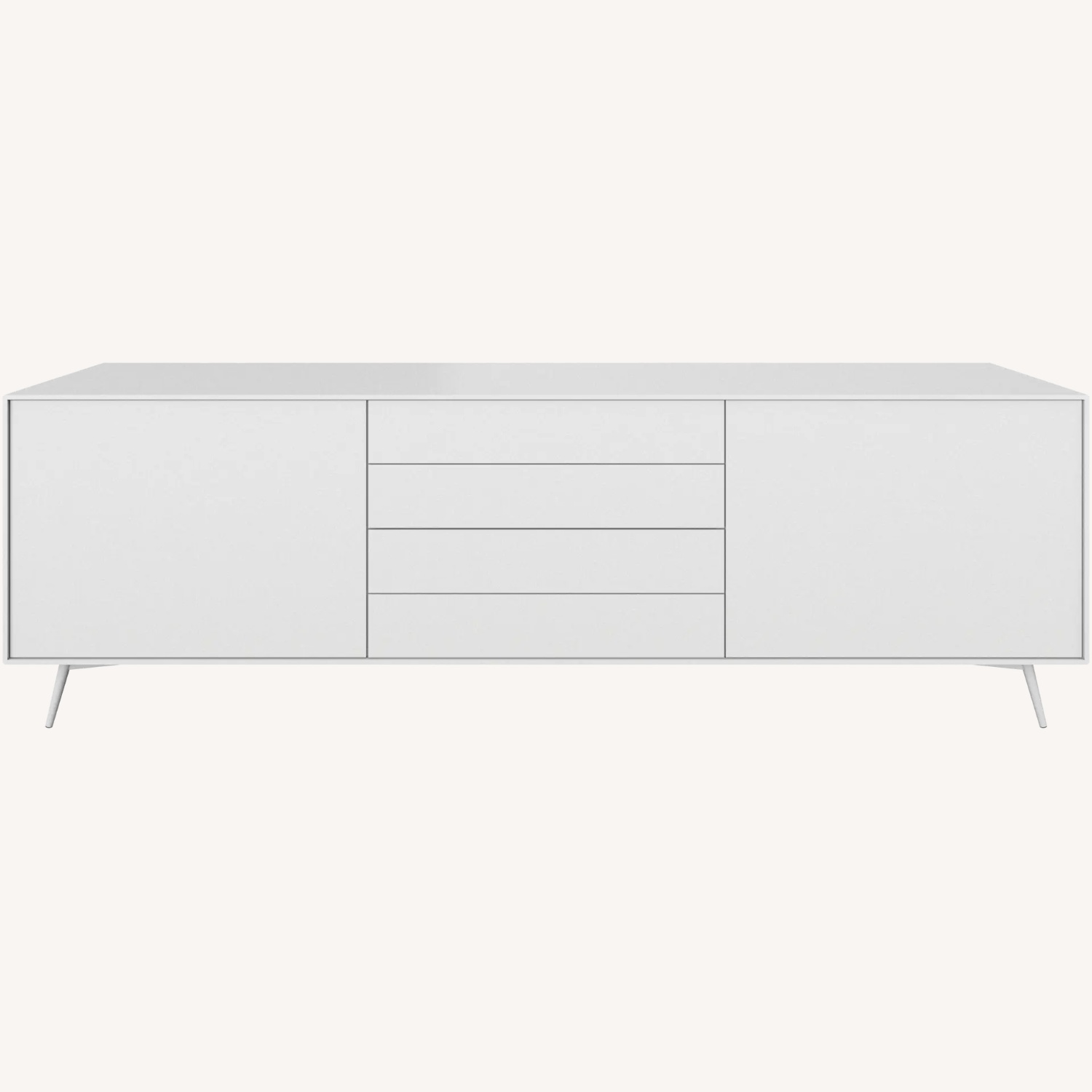 This credenza has served us so well but it does not work in our new space. The piece has a lovely modern clean design and a lot of storage. It is in great condition with only one minor scratch just below the bottom drawer. (See photo.)