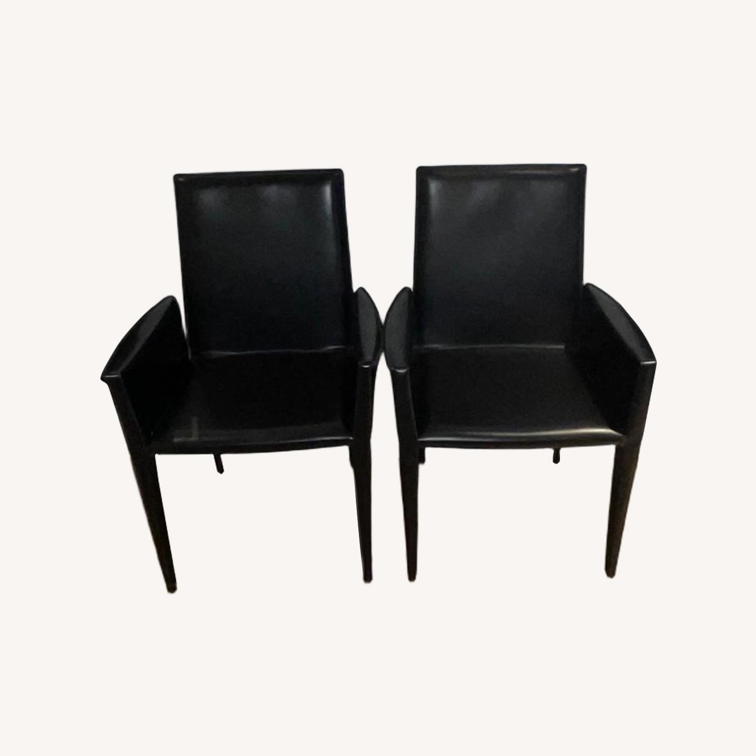 Bottega Black Leather Armchairs x4 DWR