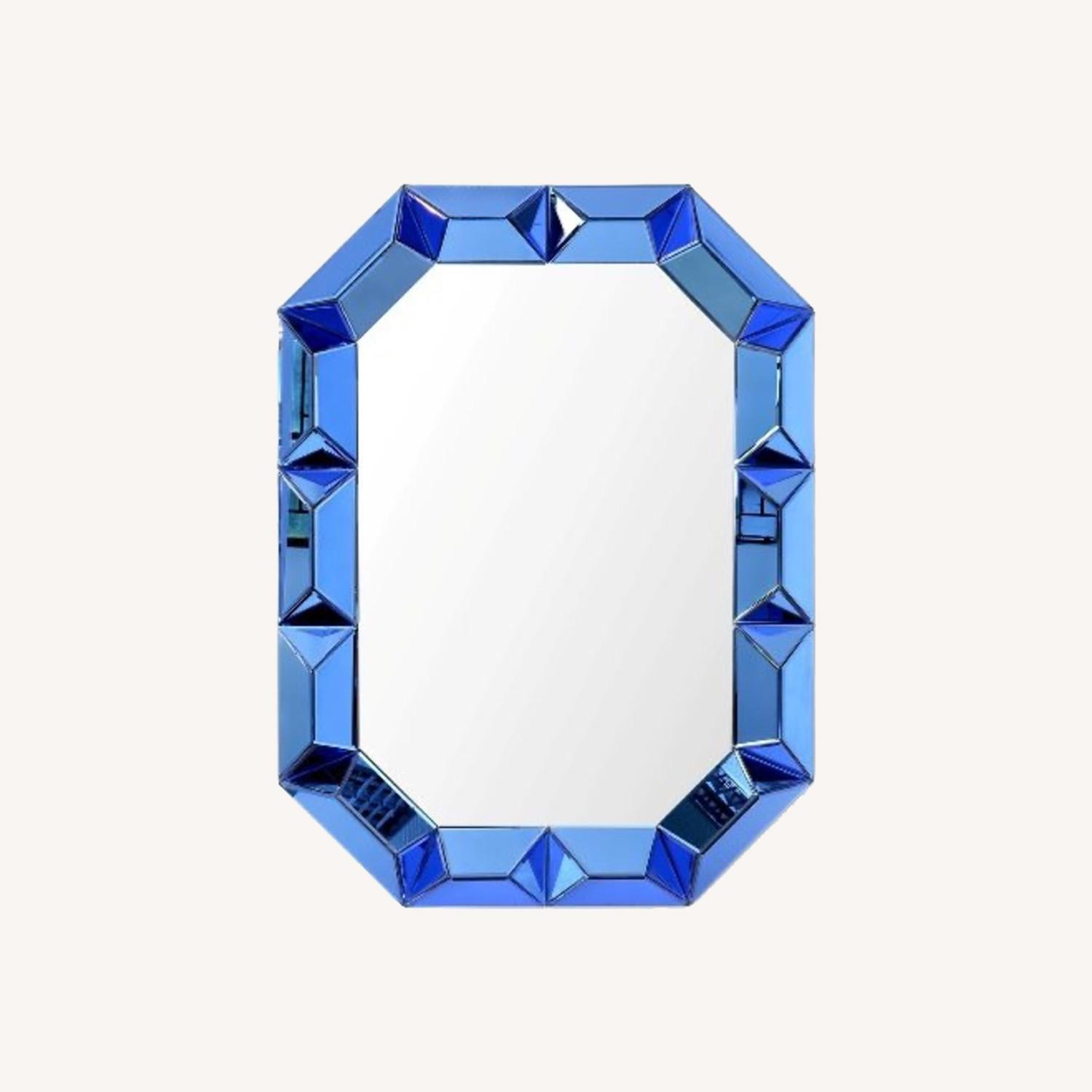 A glamorous accent glittering with multifaceted glass, the Romano Wall Mirror adorns your space like a glamorous piece of jewelry. Its frame consists of gemlike geometry, featuring angled planes of mirrored glass. Each one is expertly cut, beveled, and finished in vibrant jewel tones of sapphire blue with polished edges that capture light and reflect kaleidoscopic shimmer. Its bold, three-dimensional border acts as a dramatic focal point in any room. Install it vertically or horizontally above a desk, console, sofa, or bedroom dresser. You can even pair two to create a striking scene at a large bathroom vanity. As with most of Villa & House’s pieces, you’re sure to hear, “Where did you get that?!”