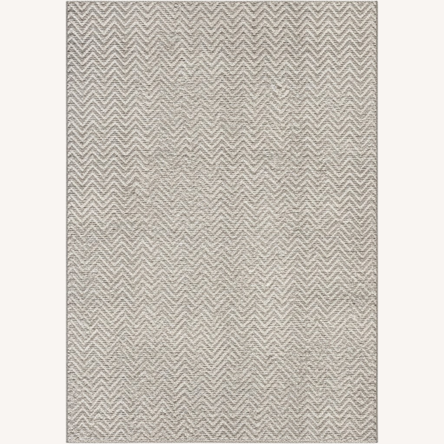 Retailer description "This is one of our most durable, low maintenance, and easy-to-clean rugs. The heathered chevron pattern creates a neutral gray field with a bit of visual detail. The recycled polyester flat weave is even puppy-proof, so you don't have to worry about animal claws tearing your rug!"