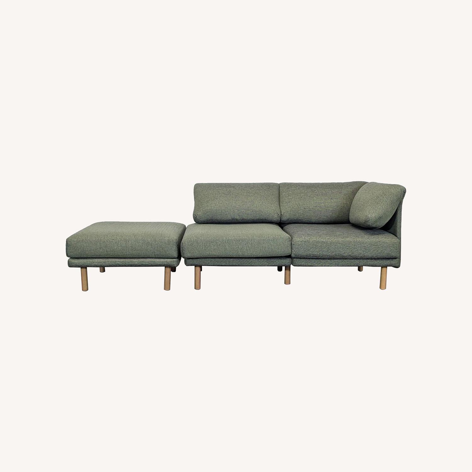 Seller's Notes:This Burrow sectional offers modern style and comfort in a compact design. The set includes a green 3-piece modular sofa with a matching ottoman that can be positioned in many different arrangements. Easy to fit in most living rooms, its soft cushions and sturdy wooden legs make it perfect for relaxing or entertaining guests. Excellent choice for small spaces.