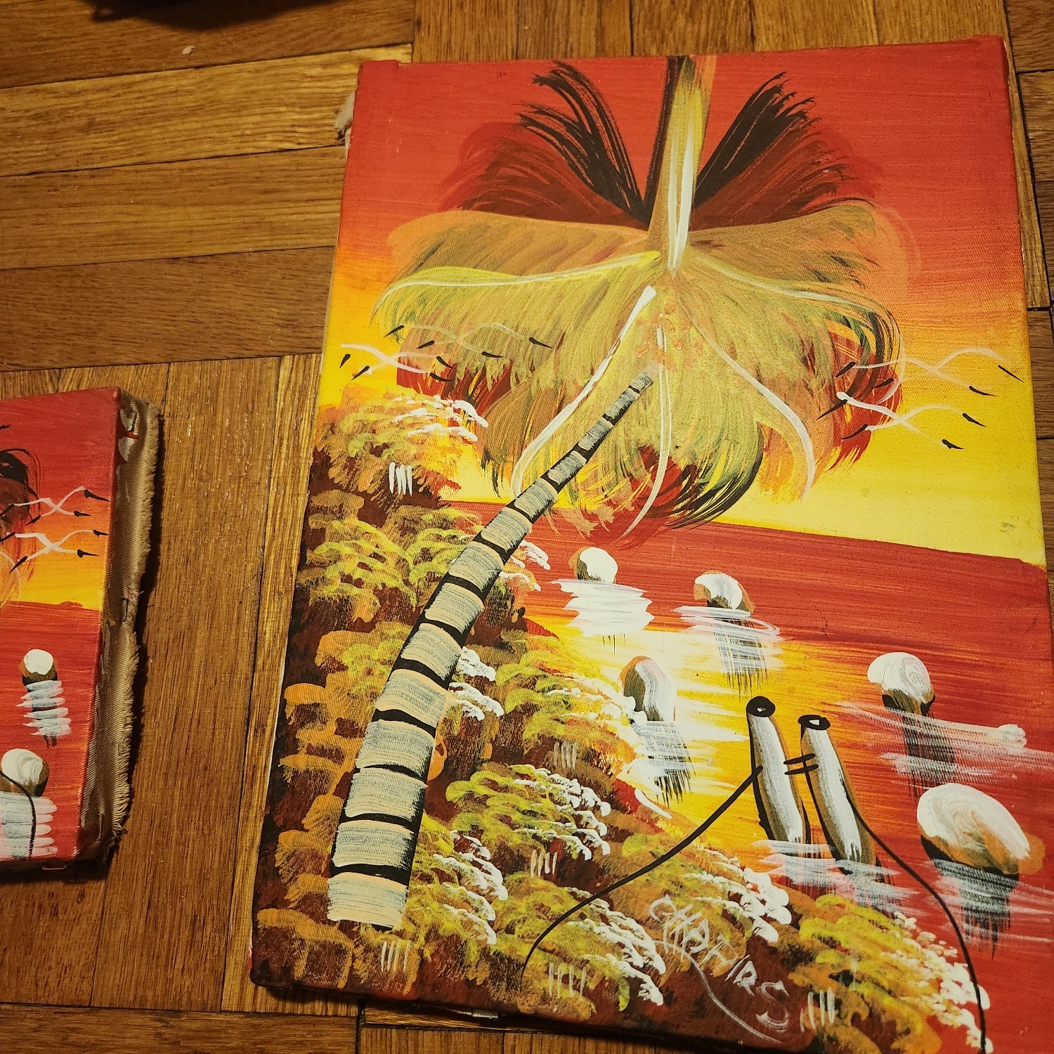 Seller's Notes:2 oil paintings from the French West Indies. They were in storage for 30 years. Both very nice 11 1/2 by 16 1/2. The other one is 8 by 10 inches. Sold as a set.