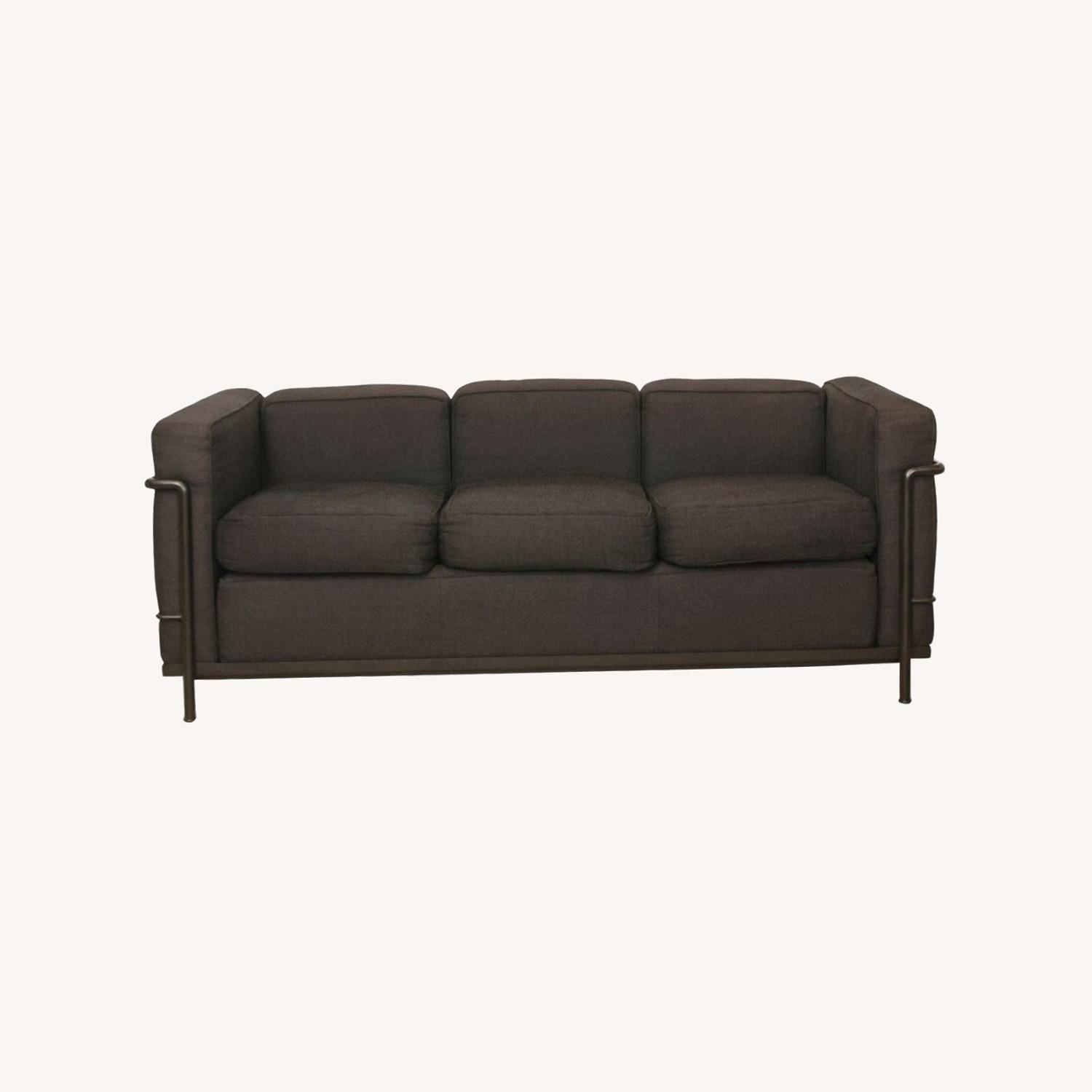 Seller's Notes:Cassina iMaestri Collection Le Corbusier Trois Places Sofa by Pierre Jeanneret, Charlotte Perriand A timeless style that has written its own chapter in design history, becoming an icon of global fame. Designed for ease of conversation, the armchair was exhibited at the Salon d’Automne [Autumn Salon] in Paris in 1929 as the archetype of the modern concept of furnishings, interpreted by its authors as “household equipment”. The separation between the metal structure and the cushions is consistent with the principles of Rationalism, just as the separation between the parts is based on an industrial approach to production, reminiscent of the architectural relationship between the load bearing structure and the in-fill elements. These models are also available in an eco-friendly version that stays true to the original design. Thanks to the study conducted by Cassina LAB, a partnership between the Cassina Research and Development Center and the Poli.design consortium of the Politecnico University in Milan, the foam-fill parts, the padding in the cushions and the tubular structure are produced with sustainable materials and processes. Designed for ease of conversation, the armchair was exhibited in 1929 at the Salon d’Automne in Paris as the archetype of the modern concept in furnishings, interpreted by its authors as “household equipment”. Dimensions: 70.5" W x 27.6" D x 27.6" H, Seat Height: 18" Production Year: 1965
