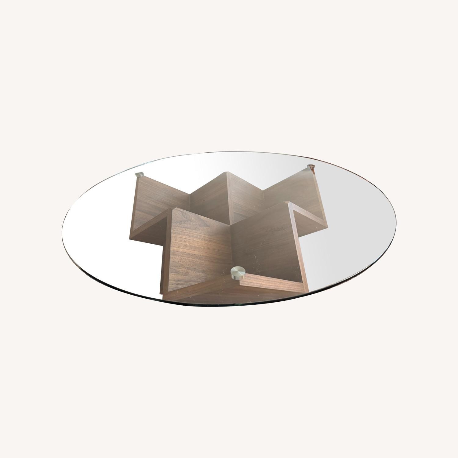 Seller's Notes:American Walnut Veneer with Engineered Wood - Tempered Glass Top (the good stuff).