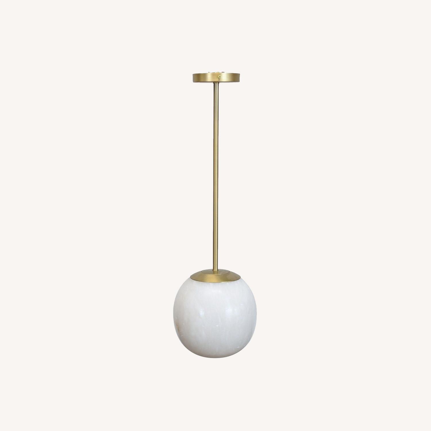 Seller's Notes:The CB2 Savina Pendant is a stylish lighting fixture featuring a natural alabaster globe and solid brass accents.