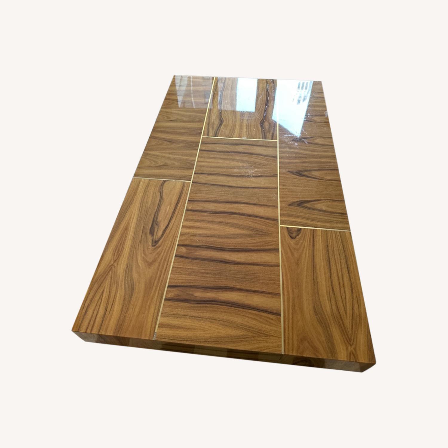 Seller's Notes:Beautiful modern coffee table with gold inlays and polished finish. The condition is very good, there are a few minor scratches on the surface but nothing noticeable.