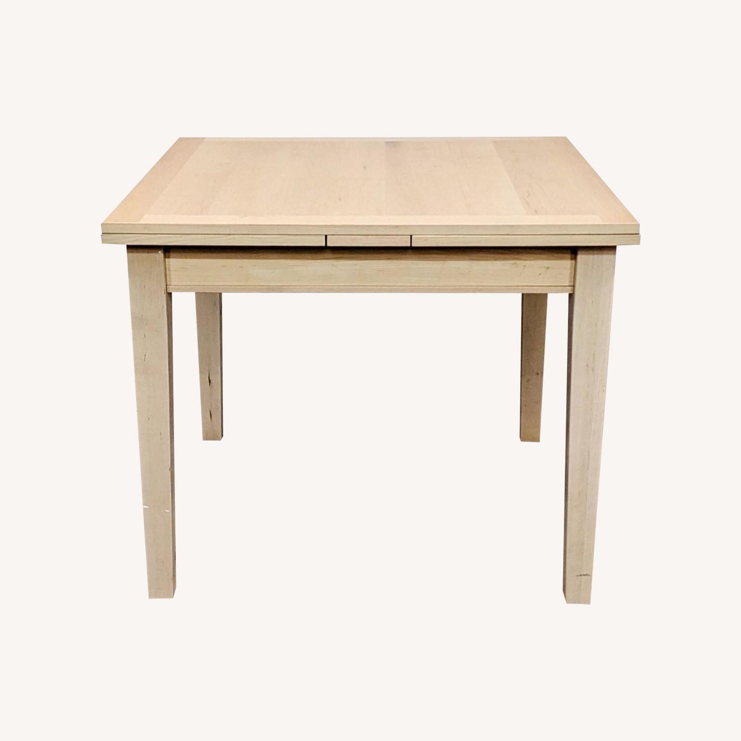 Seller's Notes:"Description: Make An Offer The Pratico dining table from Crate & Barrel is handcrafted from solid tulipwood and engineered wood in Italy and features sliding leaves with wooden arm supports.. Brand: Crate and Barrel. Model: Pratico. Retail price: $1299. Gently used - any blemishes or damage will be included in the photos. #SKU: 1058010. Tags: transitional,contemporary,wood"