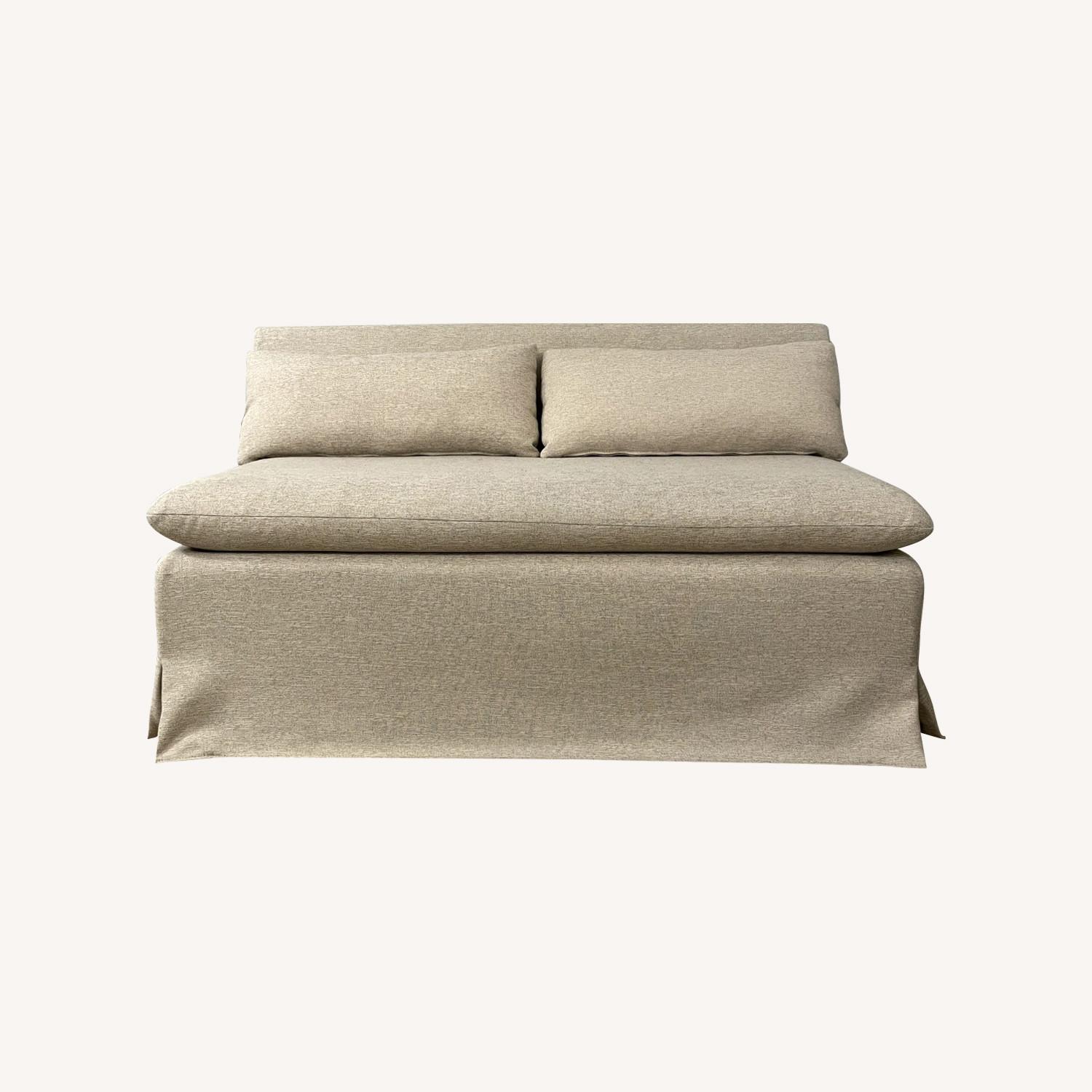Seller's Notes:Banquette purchased in January 2024, in nearly new condition. Only one year old with minimal use in a household with a small hypoallergenic dog. No stains; no tears; covers are not stretched/worn; the zippers on the removable slipcovers all work perfectly.