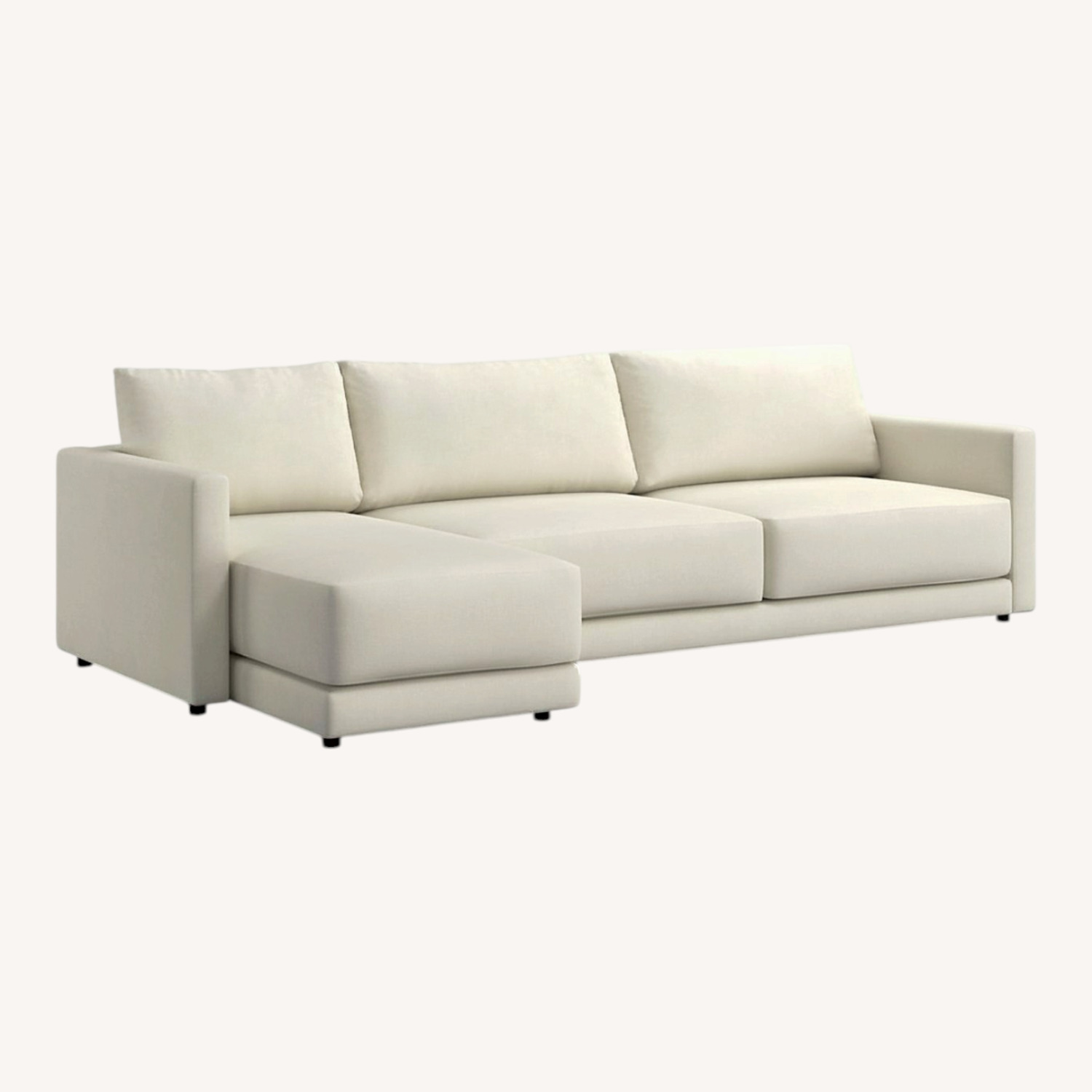 Striking the perfect balance between maximum comfort and modern style, our Gather sectional sofa is clean-lined and current. Deep-seated cushions are boxy and extra-plush made with inner-coil construction for maximum comfort and durability. Fiber-filled back cushions settle you in for the ultimate lounge.