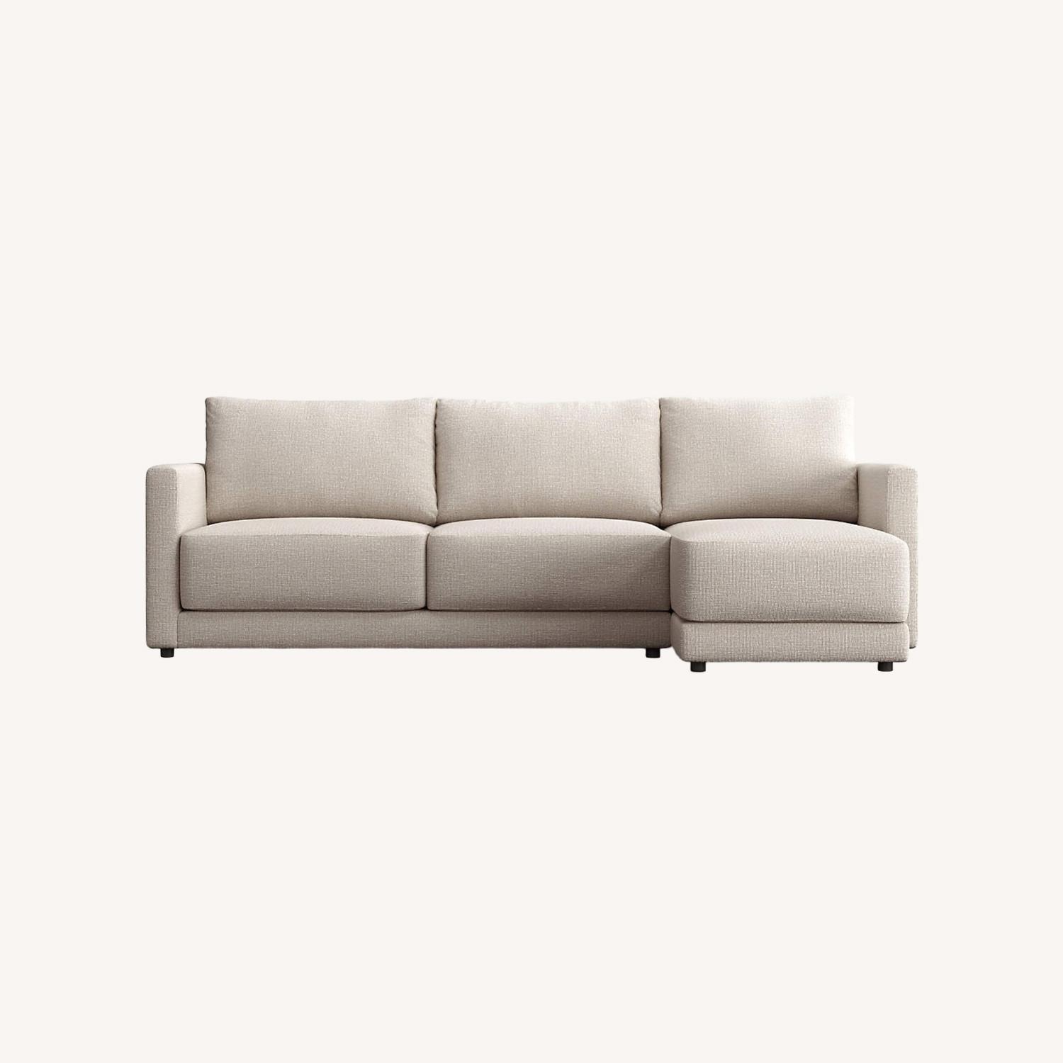 Seller's Notes:Crate & Barrel deep 2-piece sectional sofa with right arm chaise lounge, in excellent condition with no scratches or stains. Striking the perfect balance between maximum comfort and modern style, our Gather sectional sofa is clean-lined and current. Deep-seated cushions are boxy and extra-plush made with inner-coil construction for maximum comfort and durability. Fiber-filled back cushions settle you in for the ultimate lounge. Chaise is 68" long